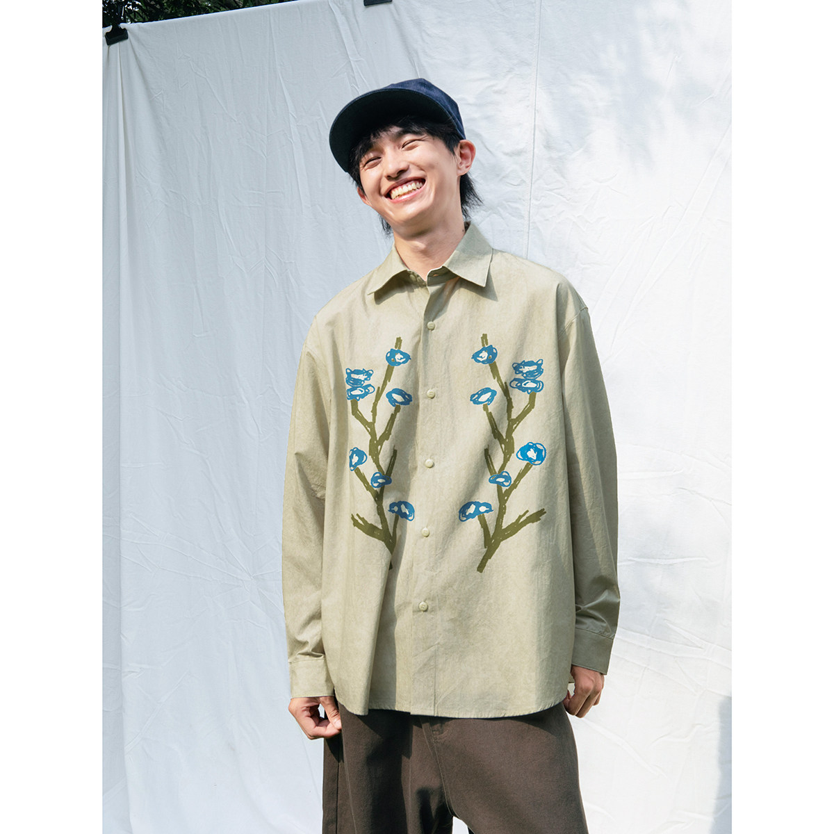 何与同款 KREATE黄金搭配领带拼接格子长袖 敖子逸 老钱风衬衣 衬衫
