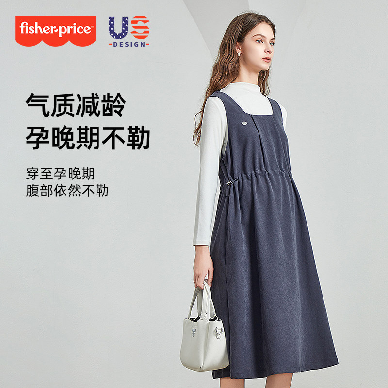 百搭针织打底上衣背带连衣裙秋装 新款 女 2025秋季 费雪孕妇两件套装