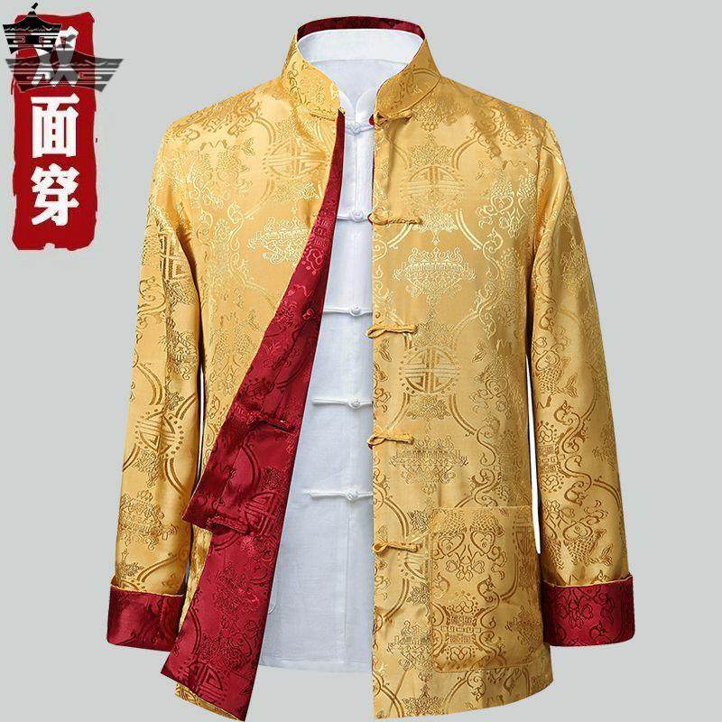双面穿外套中国风爸爸礼服爷爷装 唐装 中式 长袖 汉服 男中老年春秋季