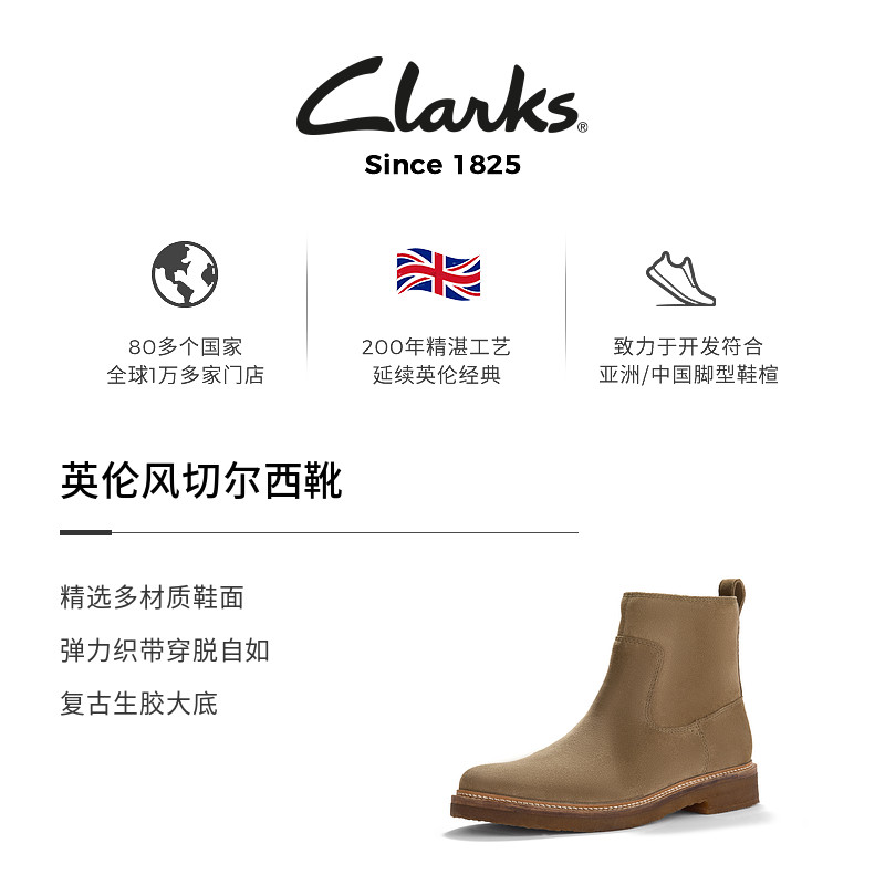Clarks其乐Clarkdale 英伦风百搭切尔西靴复古生胶底短靴 Boot男鞋