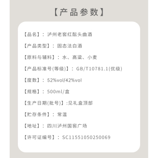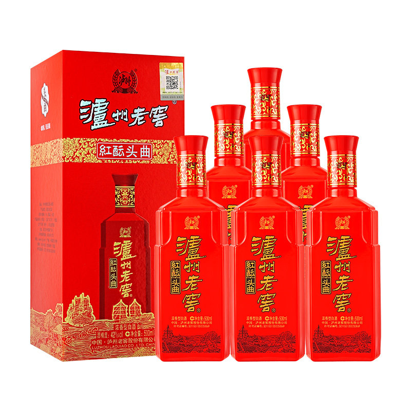 6瓶 泸州老窖红酝头曲500ml 5箱浓香型白酒送礼袋 宴席用酒