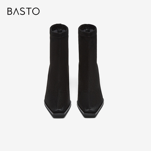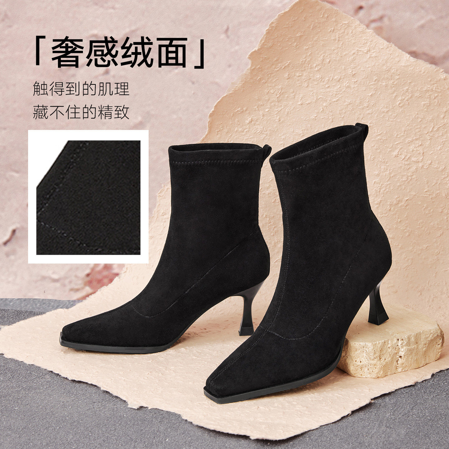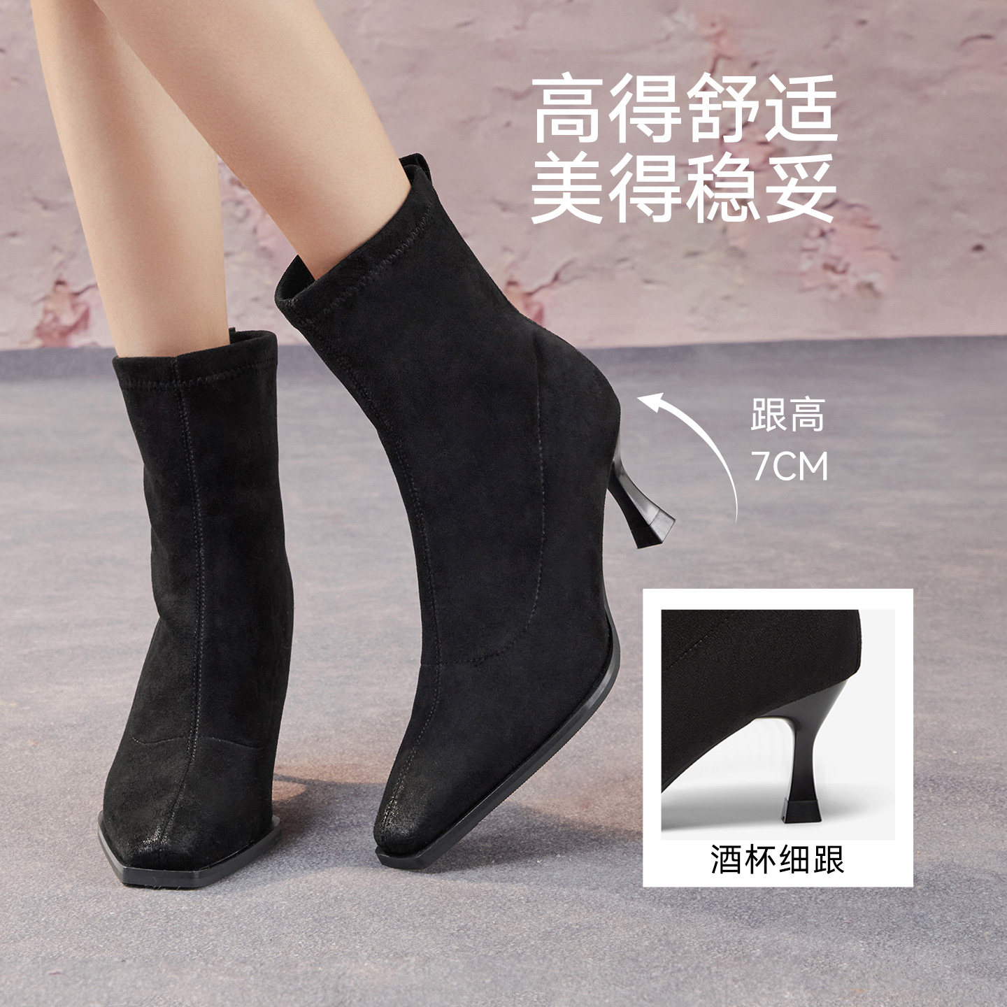 简约通勤细高跟女中靴B7081DZ5 弹力靴时尚 百思图2025冬季 新款