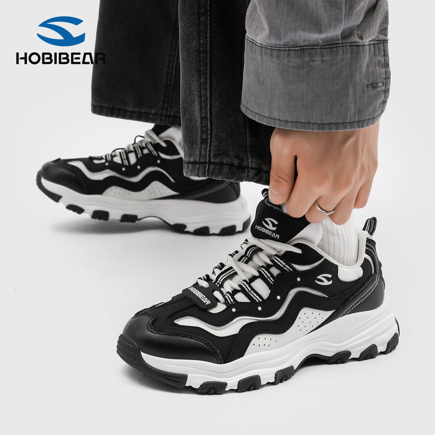 男女同款 百搭运动鞋 情侣运动休闲黑白经典 时尚 老爹鞋 斯凯奇熊猫鞋