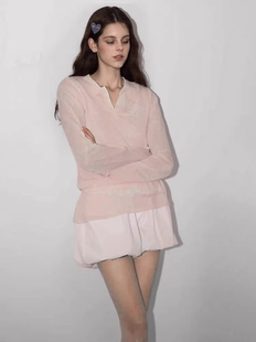 polo领心机针织衫 打底羊毛小众上衣 女2025秋冬设计感内搭毛衣薄款