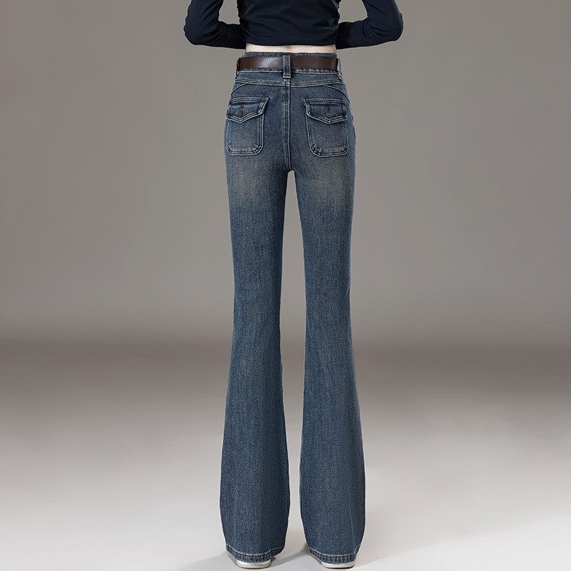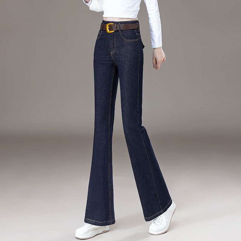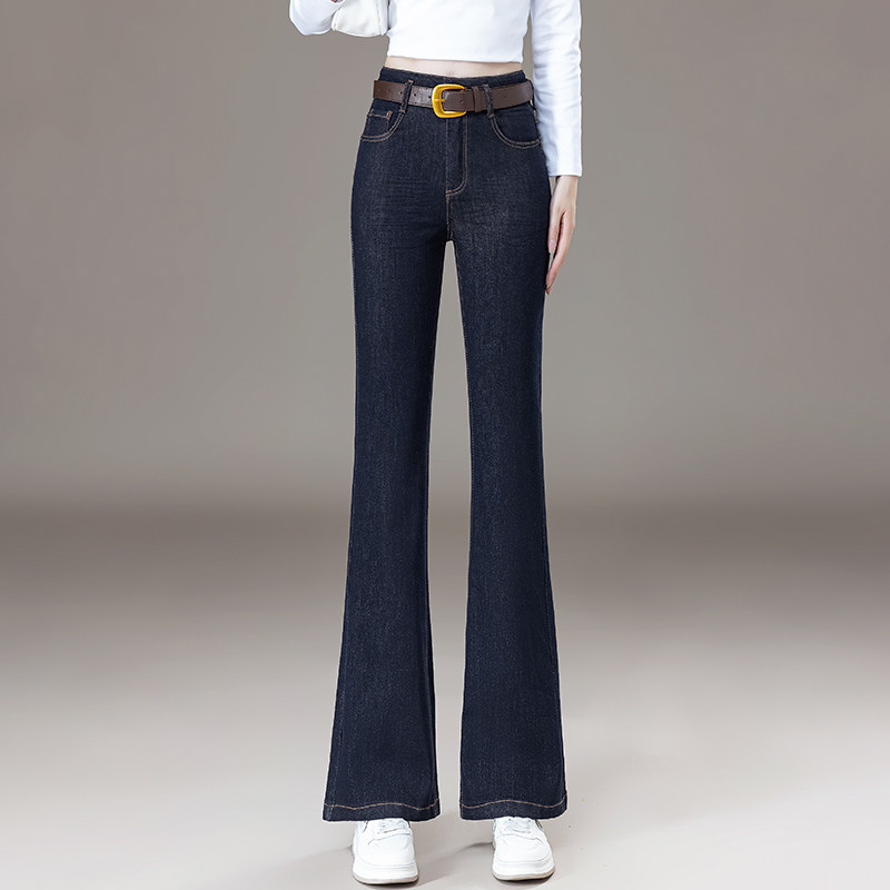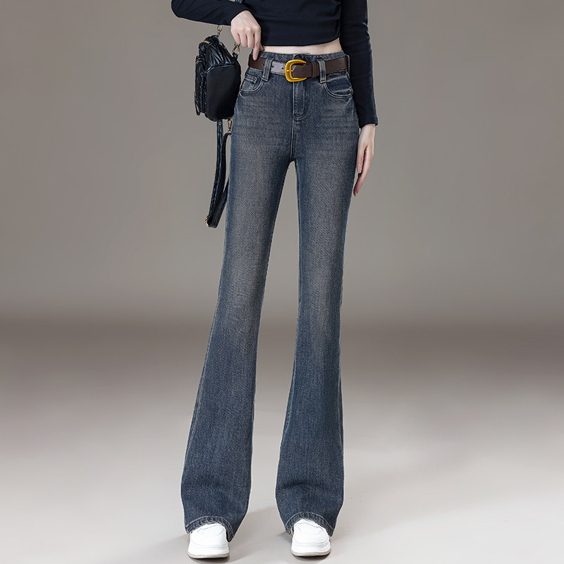 女复古高腰弹力显瘦长裤 九分微喇牛仔裤 秋冬加绒加厚修身 2025新款