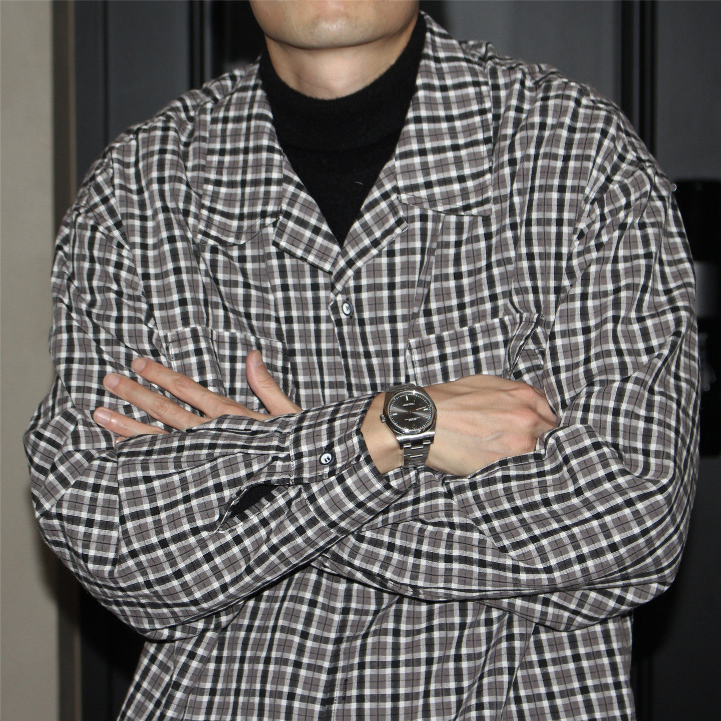 新款 NOFUNNULL 男秋季 衬衫 老钱风拼接格子上衣 假两件领带高质长袖