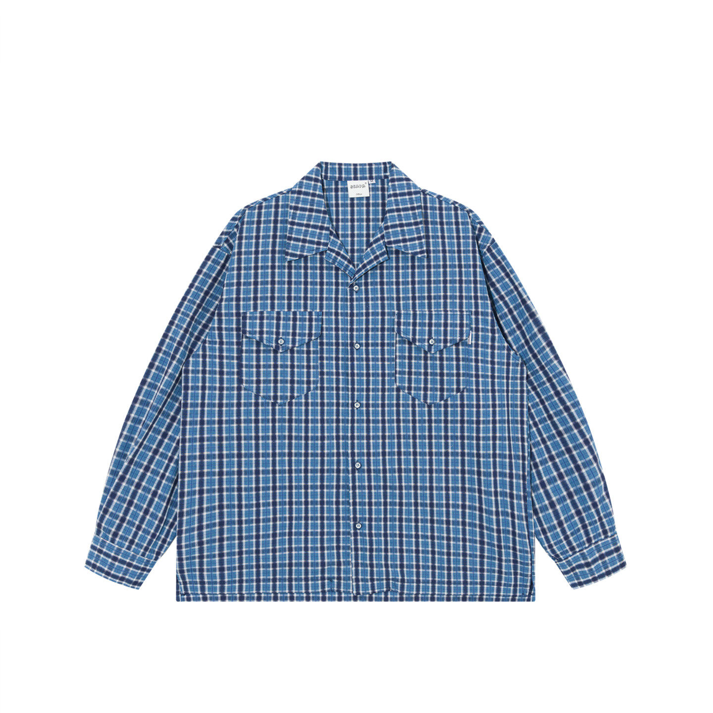 双色水洗磨毛长袖 几立 牛仔衬衫 夕阳倒映在蓝色天际