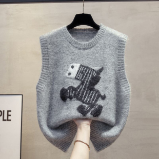 可爱小马提花针织马甲女秋冬外搭套头圆领小背心日系叠穿无袖 毛衣