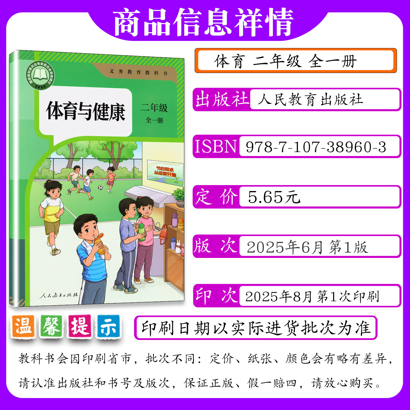 小学体育与健康2年级全一册人教版 现货 小学课本学生用书人教社体育与健康二年级全一册小学生用书教材义务教育教科书 2025新版