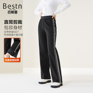 蓄热保暖针织直筒长裤 百斯盾官方 秋冬款 女士休闲裤 加绒加厚