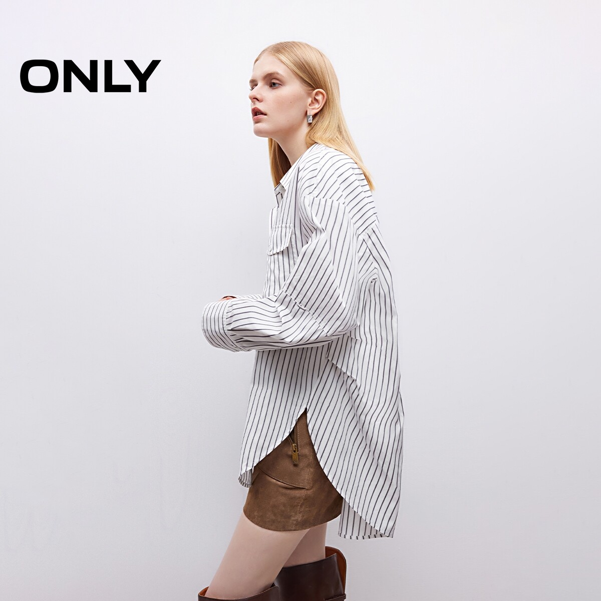 衬衫 立体剪裁松弛oversize挺阔显瘦翻领长袖 春夏款 女 ONLY奥莱