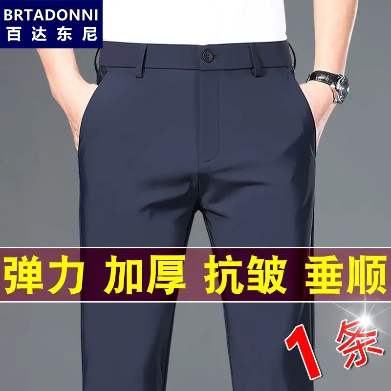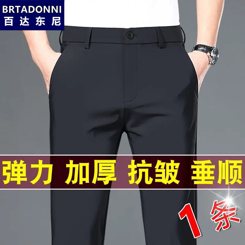 春秋弹力宽松直筒男裤 休闲裤 加绒长裤 子男商务西装 秋冬款 裤 男士