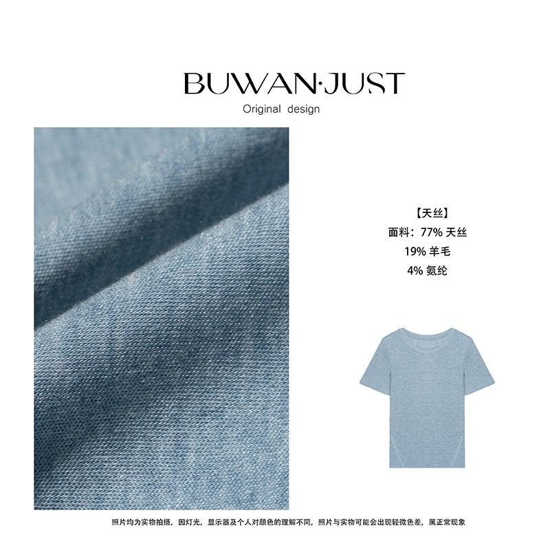 T恤B1523 蓝精天丝羊毛舒适透气短袖 不晚BUWANJUST 轻氧无拘T版