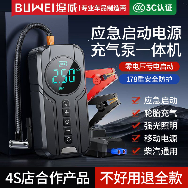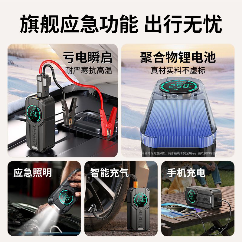 汽车应急启动电源充气泵一体机车载打气泵紧急强启电瓶搭电宝神器