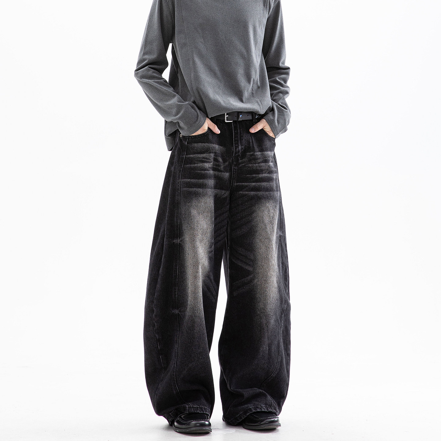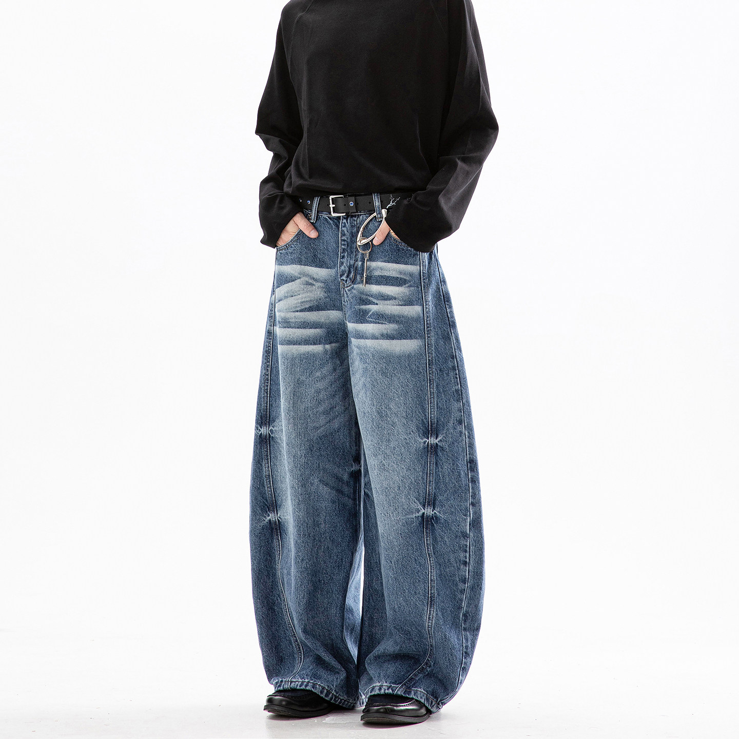 子男微喇直筒宽松原色阔腿大码 深蓝裤 原牛加绒牛仔裤 LOADMIND美式