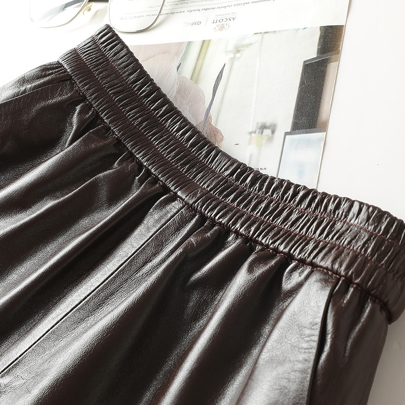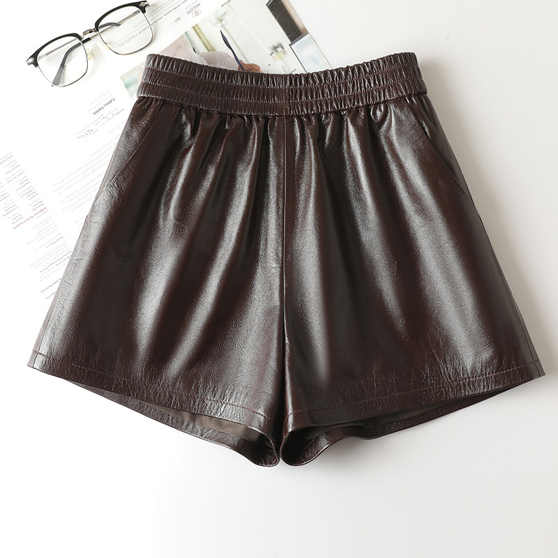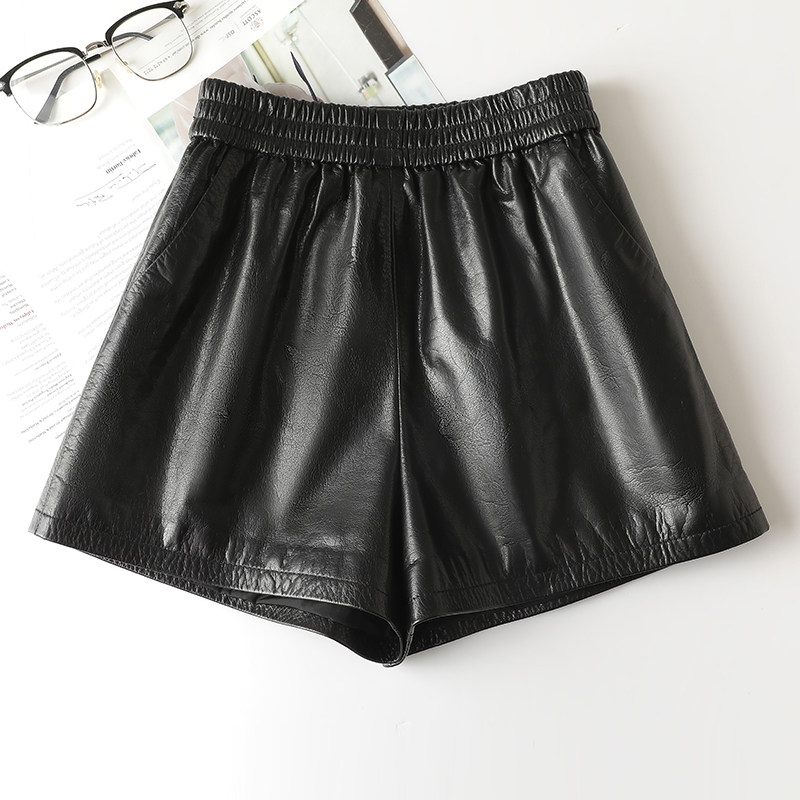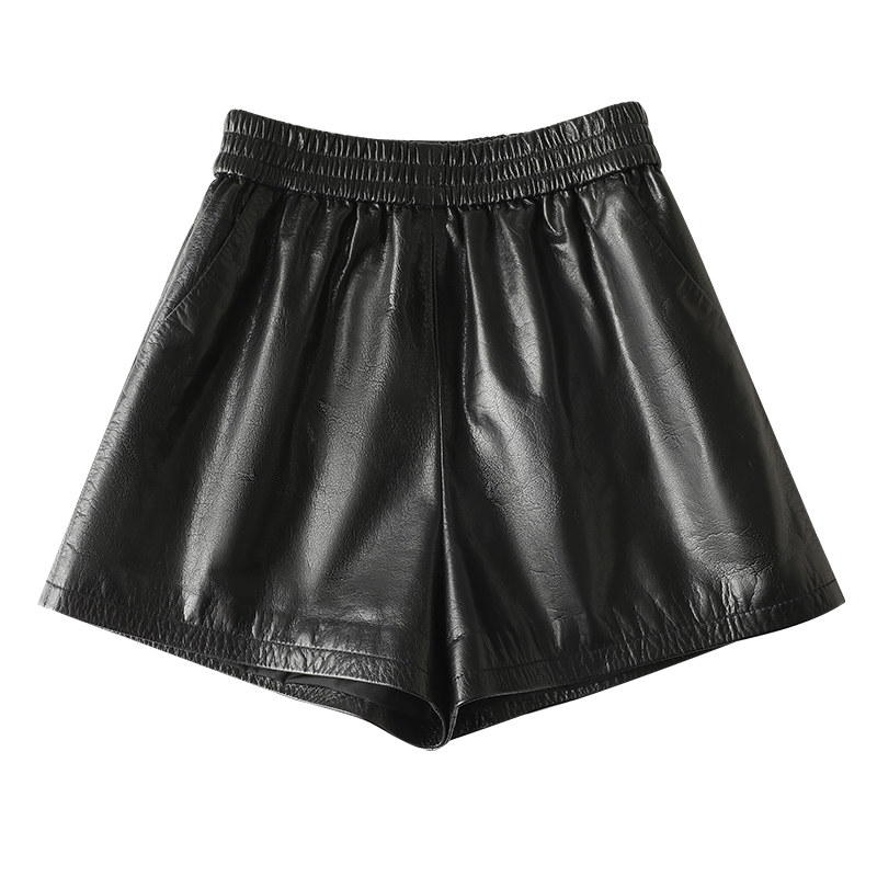 2025秋冬新款 头层牛皮真皮短裤 女高腰a字百搭显瘦外穿松紧皮短裤