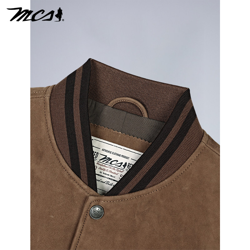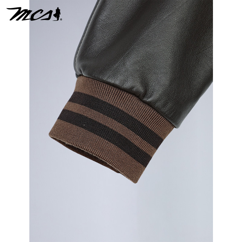 男 百搭款 MCS源自万宝路复古皮衣拼色棒球服磨面牛皮夹克美式 新款
