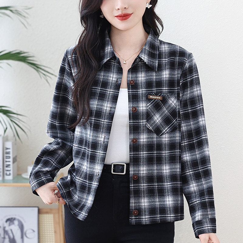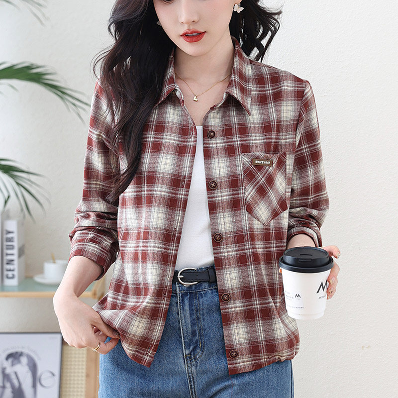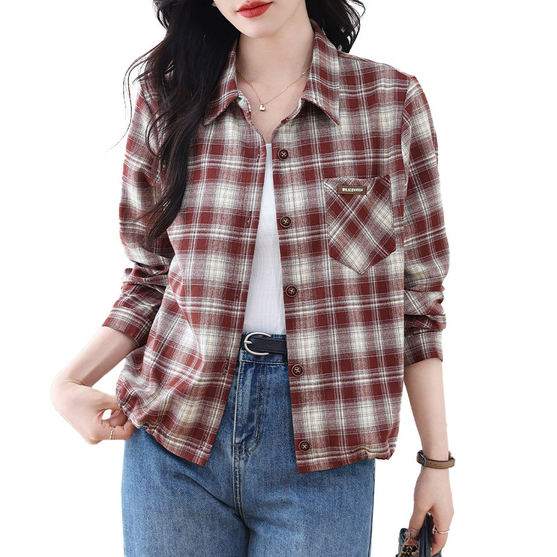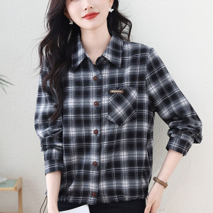 女2026年秋季 外套短款 款 格子女士衬衫 小个子 长袖 磨毛纯棉格子衬衫