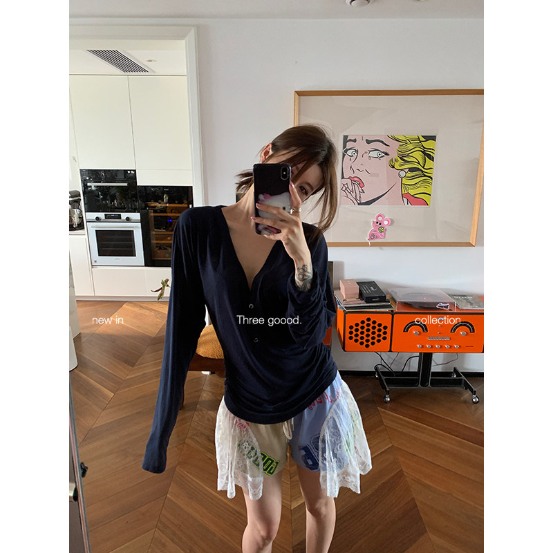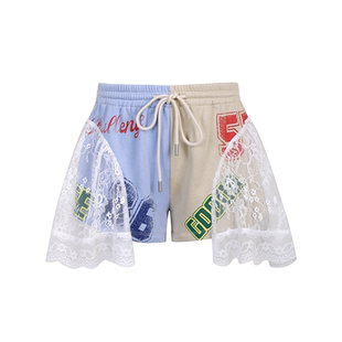 甜美泡泡撞色拼接蕾丝设计感印花短裤 THREE GOOOD殷三吉