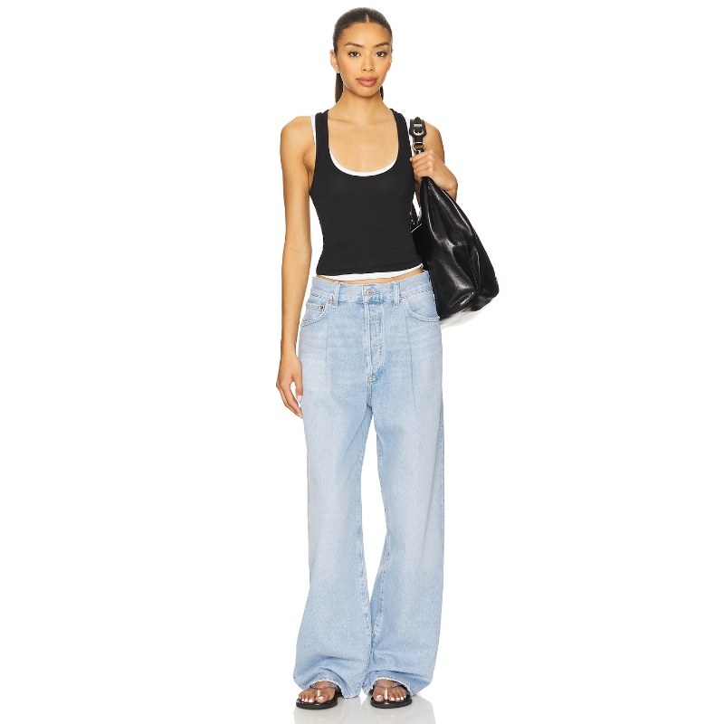 柔软丹宁简约长裤 HM女装 松紧腰时尚 水洗阔腿牛仔裤 1237416 牛仔裤