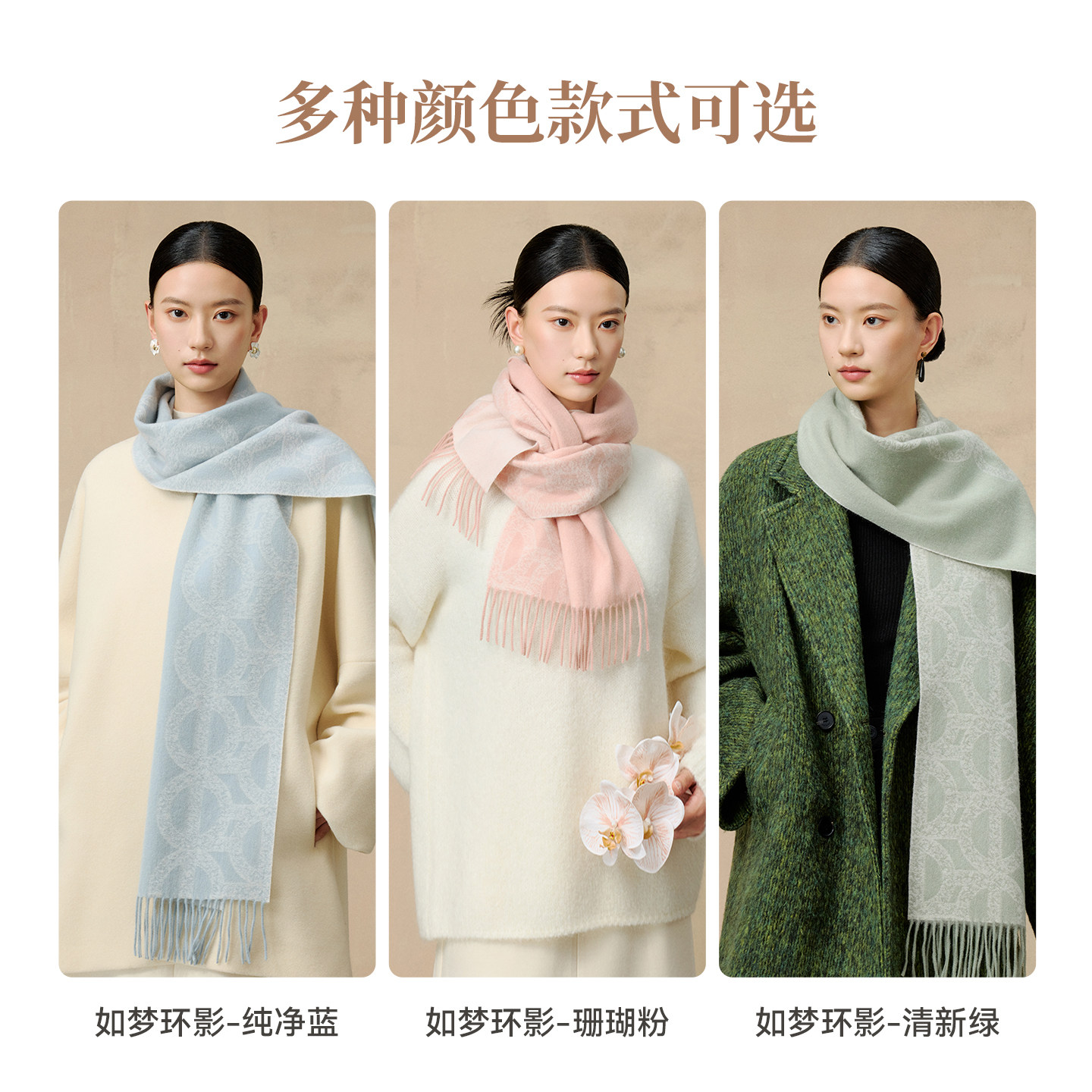 上海故事2025秋冬新款 绵羊毛围巾女提花加厚保暖围脖送长辈礼盒装