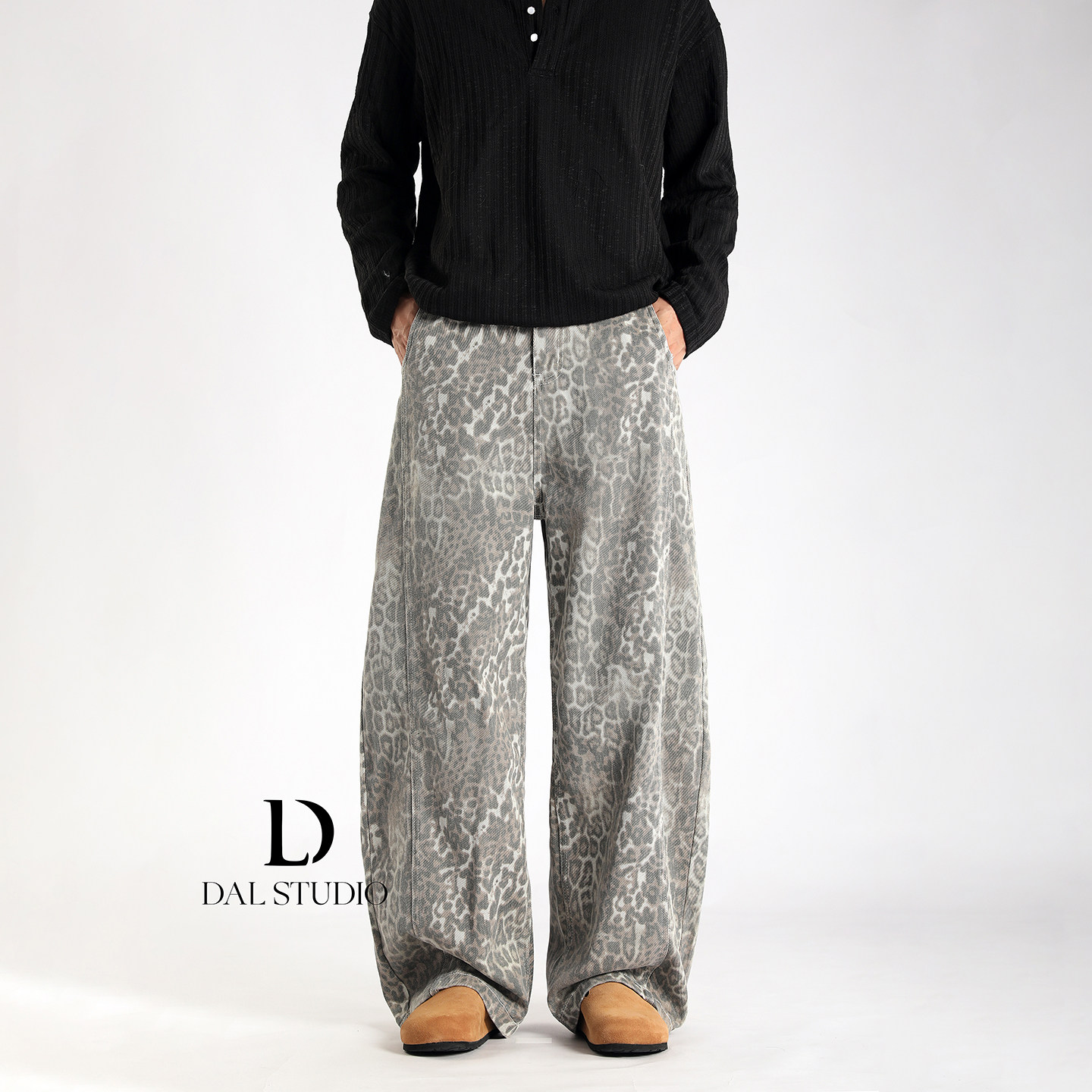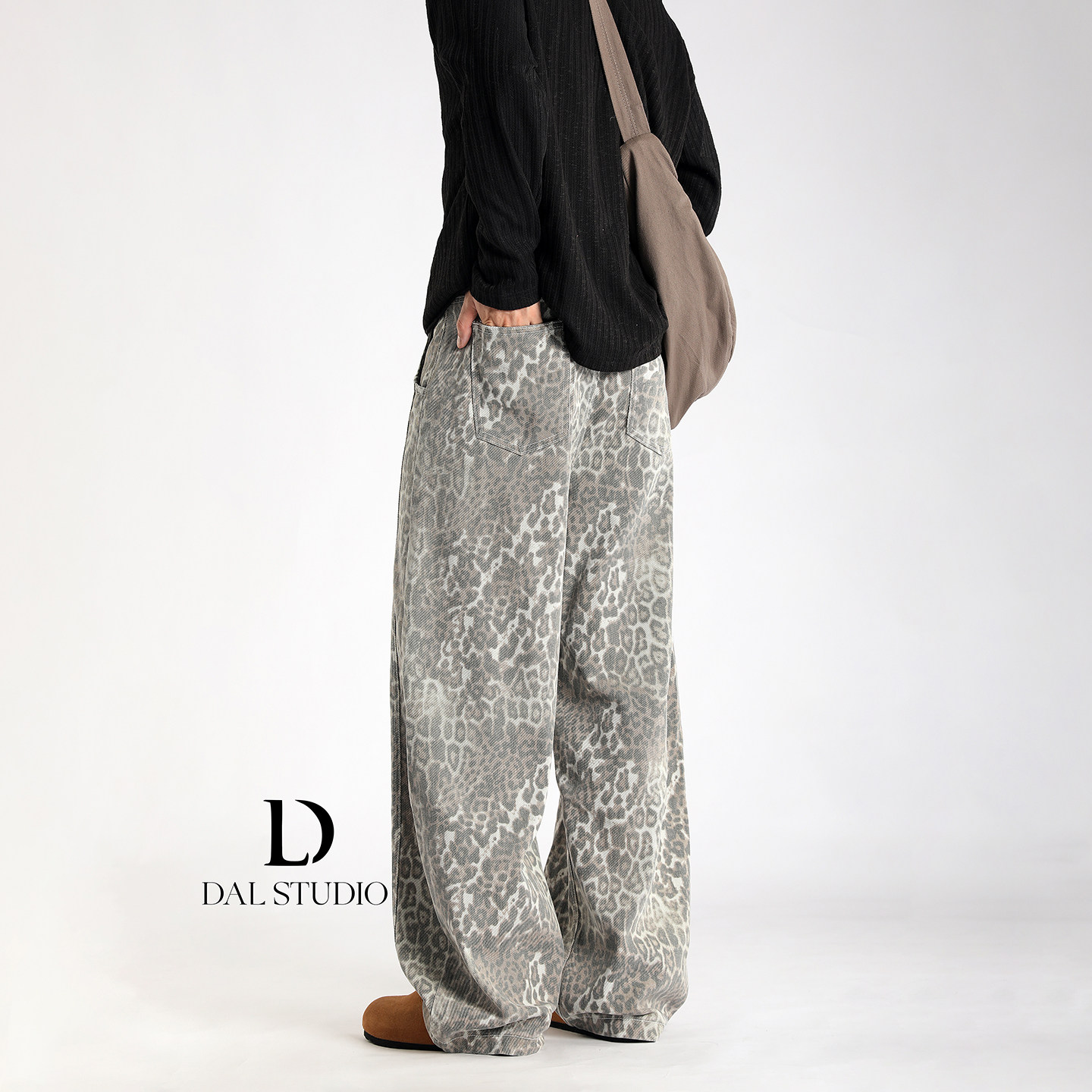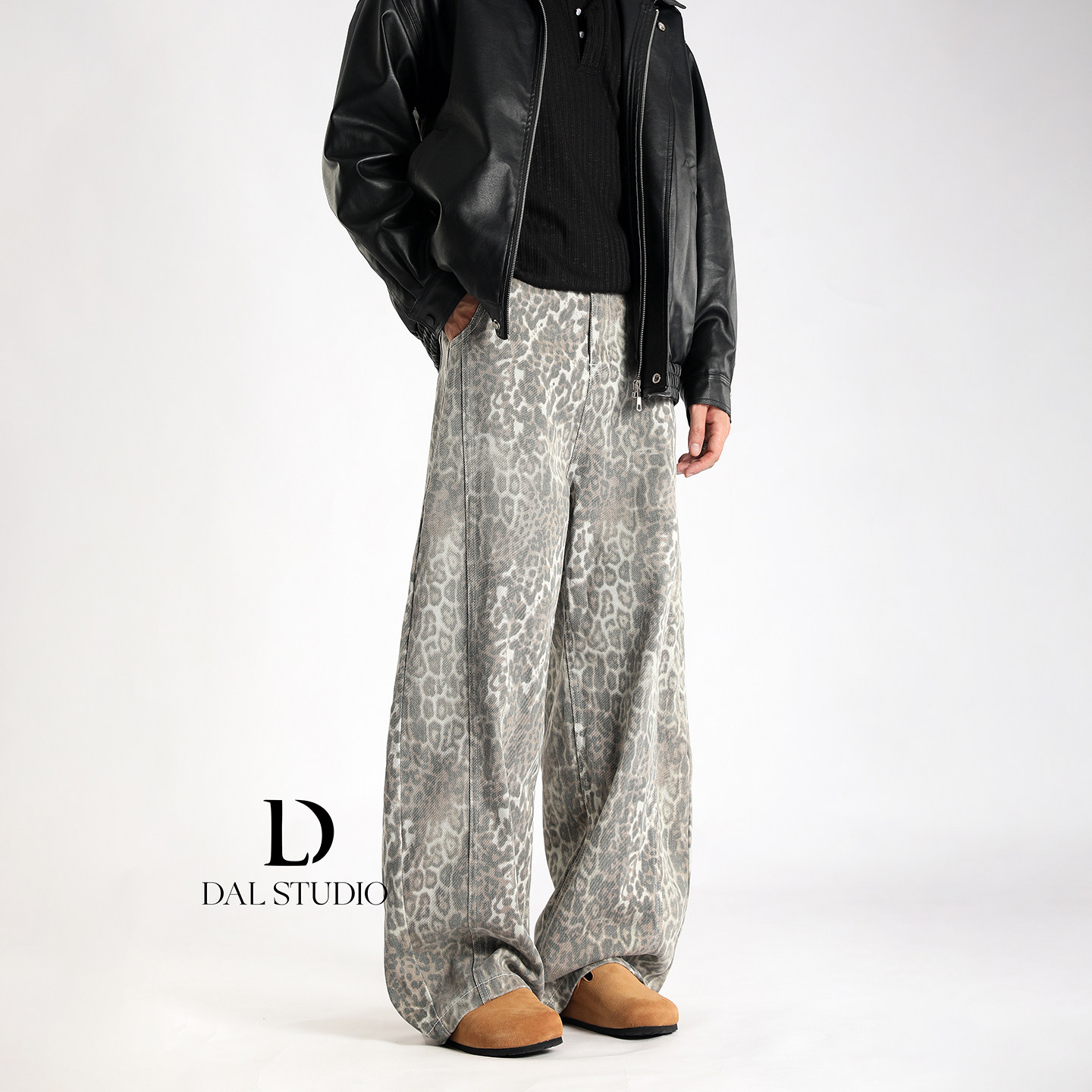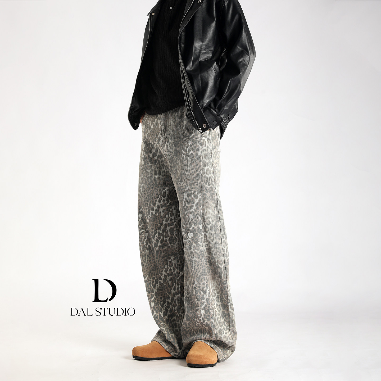 男2025年秋冬宽松廓形潮流休闲拖地裤 复古豹纹弯刀牛仔裤 美式 DAL