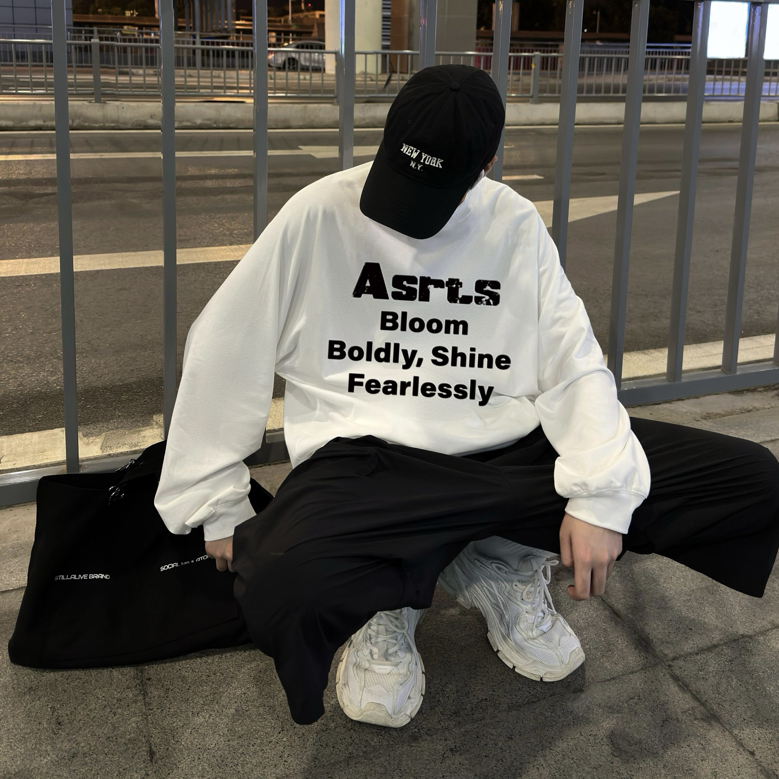 T恤男情侣打底衫 长袖 宽松上衣女 Asrts氛围感高级小众潮牌美式 正品