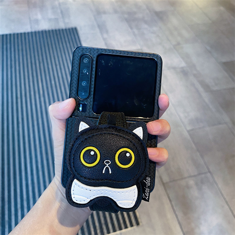 卡通黑猫手腕带适用华为PuraX手机壳折叠屏pocket2防摔novaflip适用三星zflip7 5防摔w26适用小米mixflip2