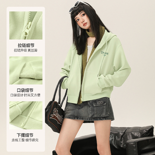 韩系穿搭小个子果绿短款 春季 上衣PC 卫衣外套女2026新款 雪中飞开衫
