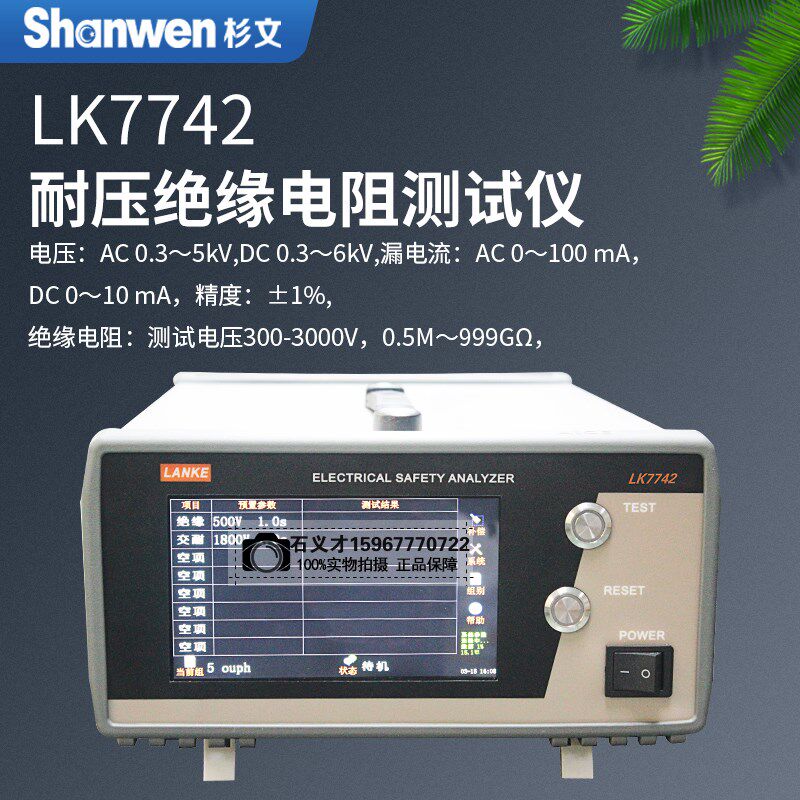 500VA 100mA 蓝科LK7742程控耐电压绝缘电阻测试仪大功率AC 5kV