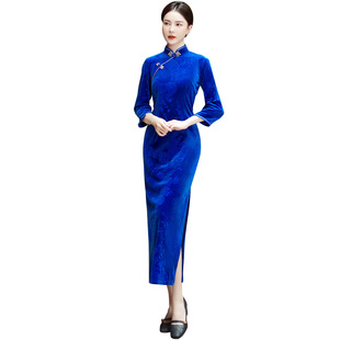 中长款 显瘦走秀连衣裙日常丝绸优雅气改良旗袍精致 复古演出服修身