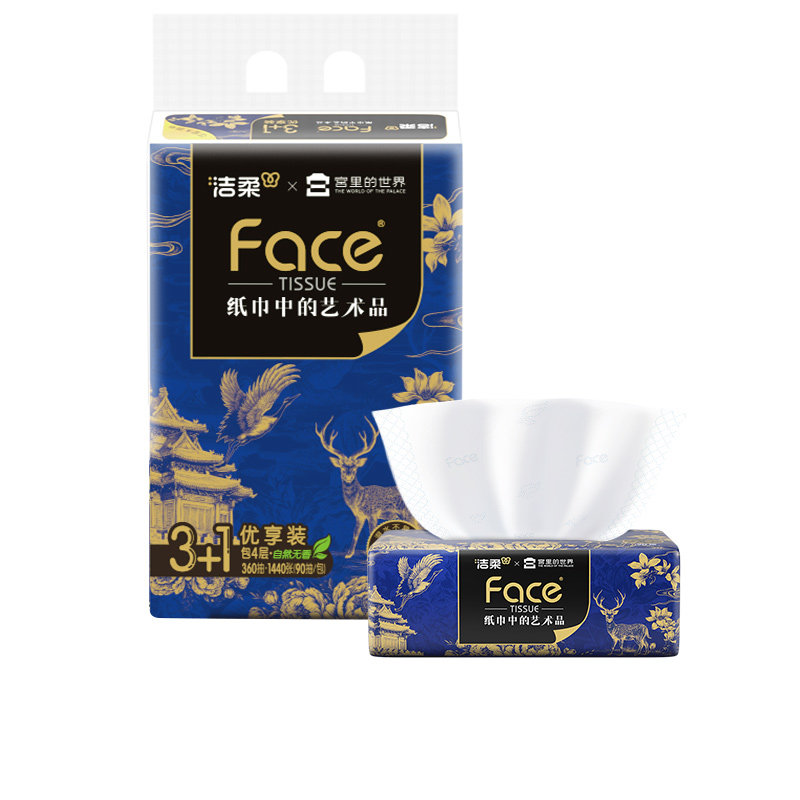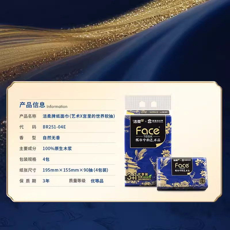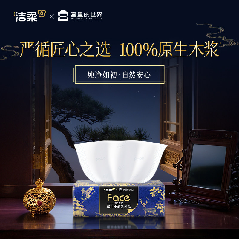 世界艺术纸4层90抽4包大尺寸M码 洁柔x宫里 面巾纸 直播间秒杀