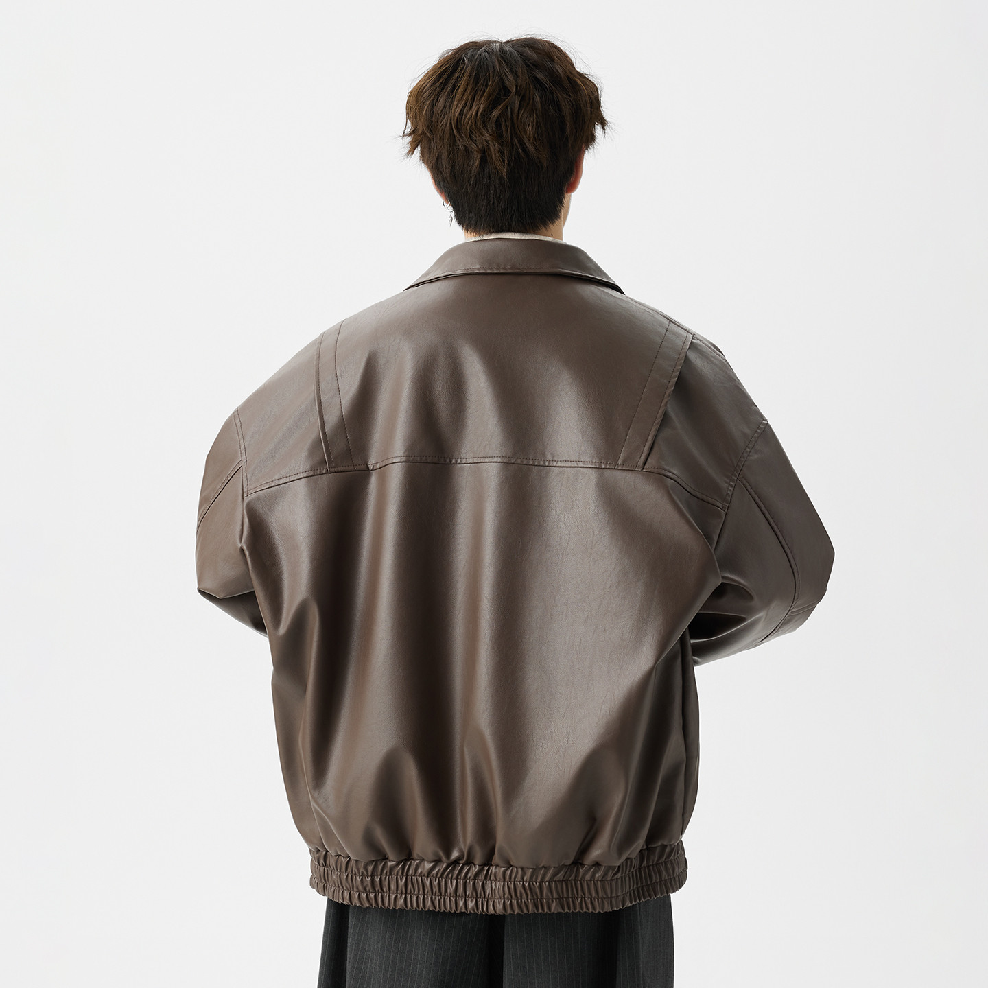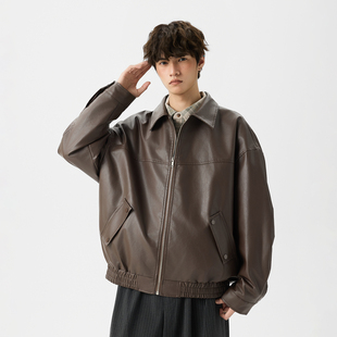男装 男士 机车服皮衣外套加厚上衣新款 冬季 衣服 棕色复古皮夹克男款