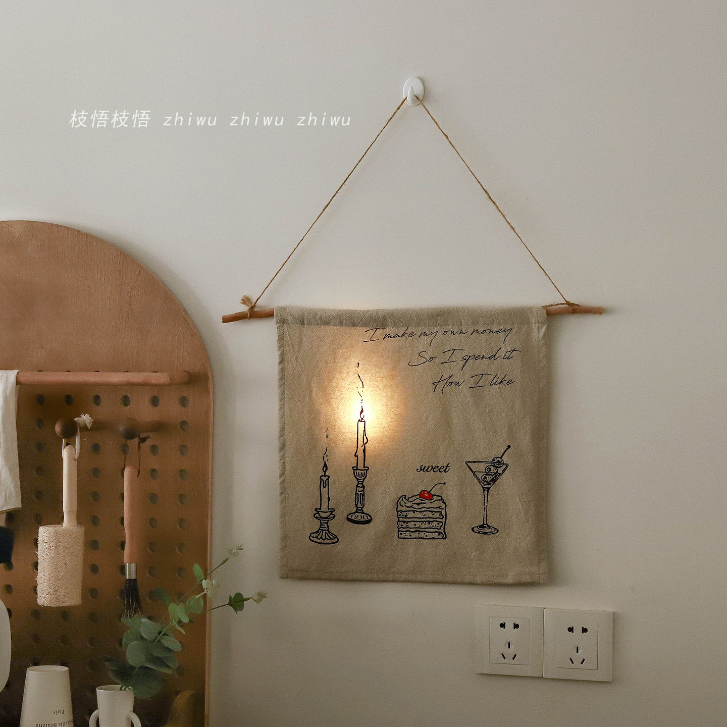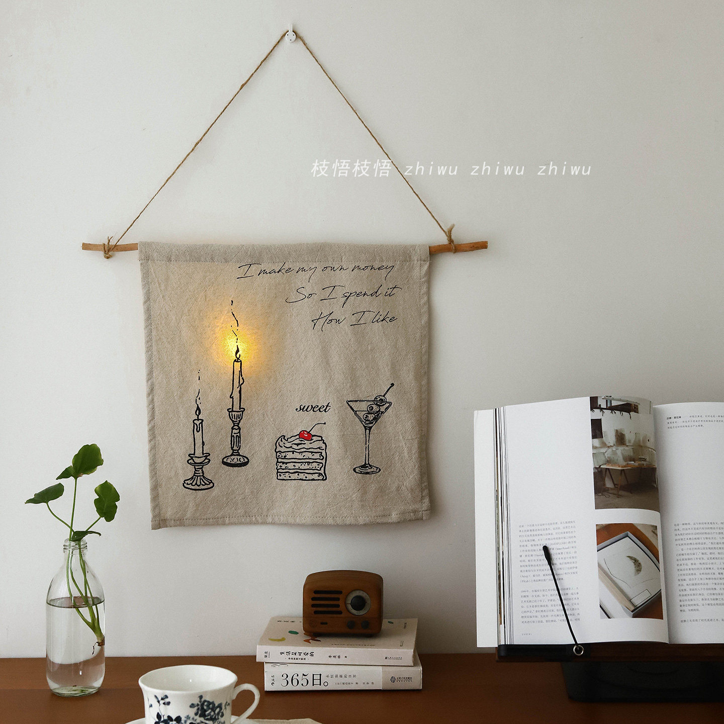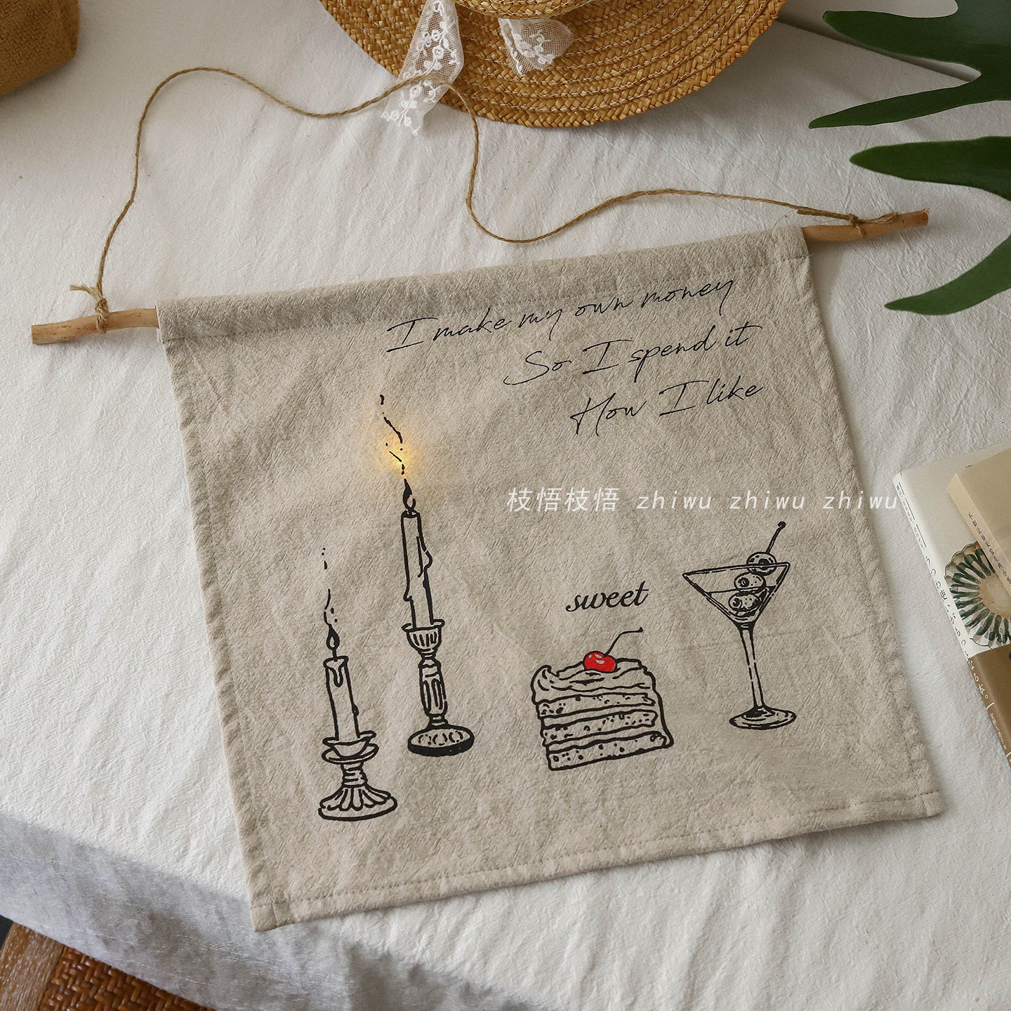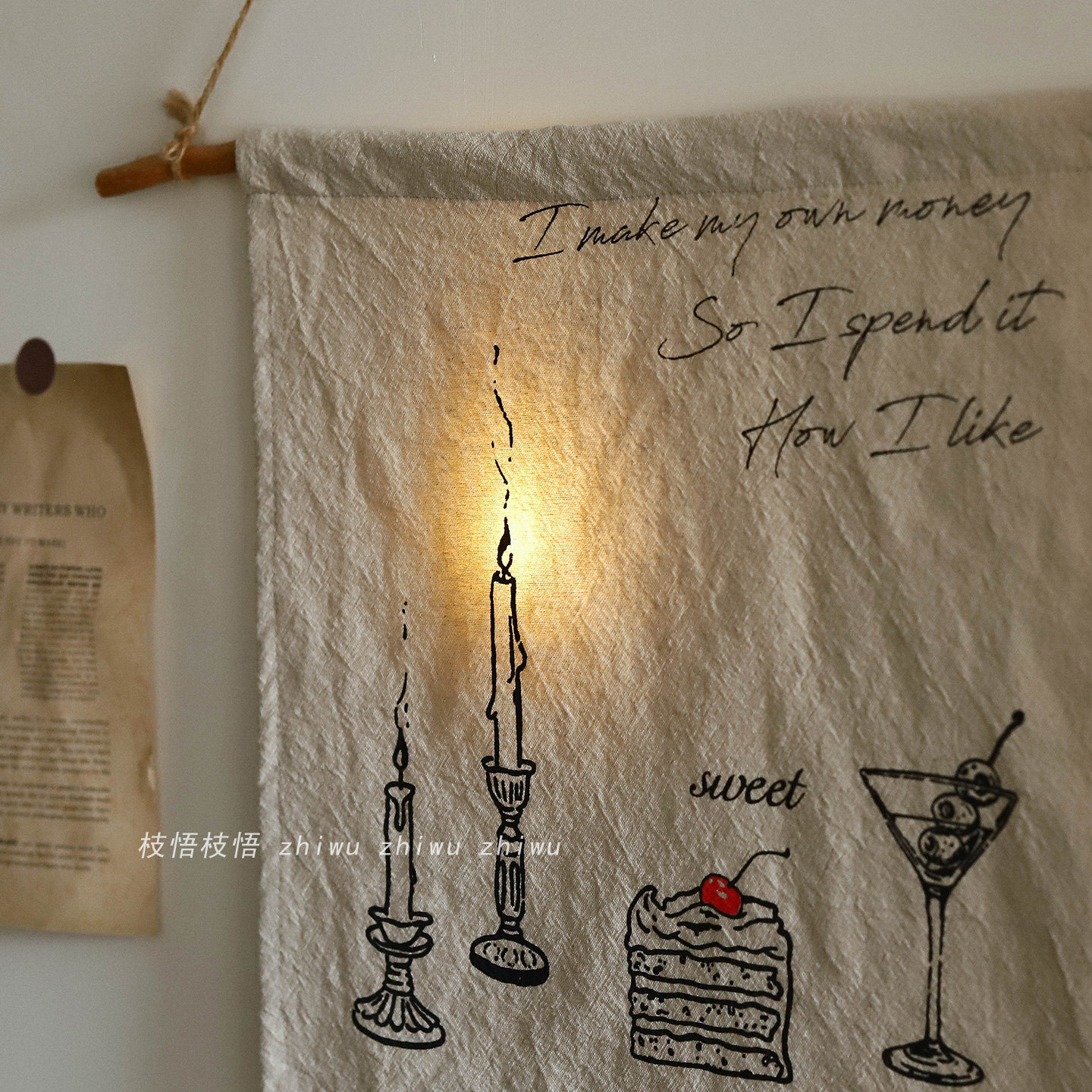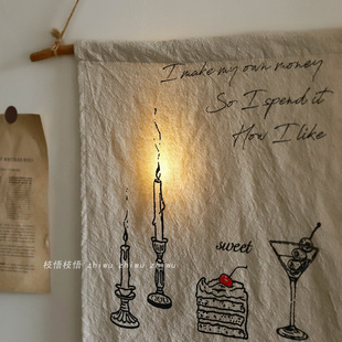 氛围感背景墙遮盖装 自制棉麻软装 饰布 生活自己决定蜡烛挂布 枝悟