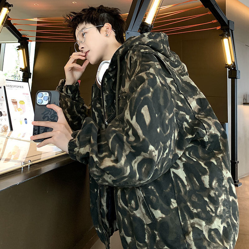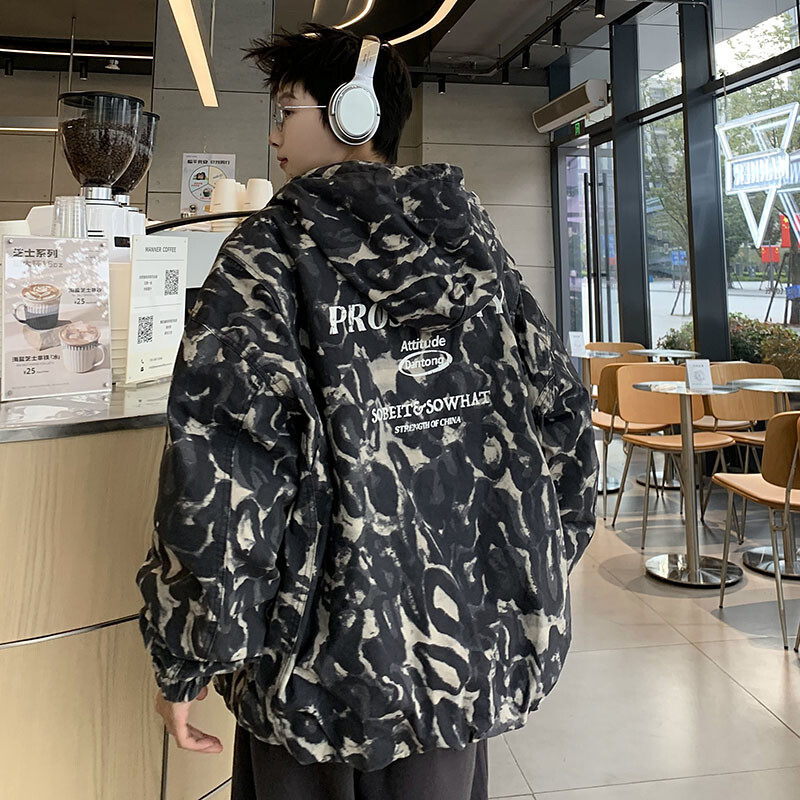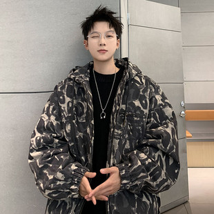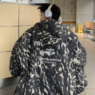 悟空有货美式 潮牌保暖百搭棉衣外套 大理石座山雕连帽棉服男女冬季