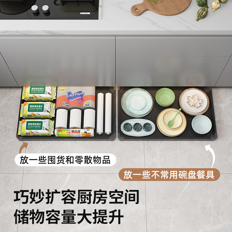 厨房踢脚抽屉橱柜抽拉托盘拉篮反弹踢脚工具抽储物篮收纳滑轨轨道