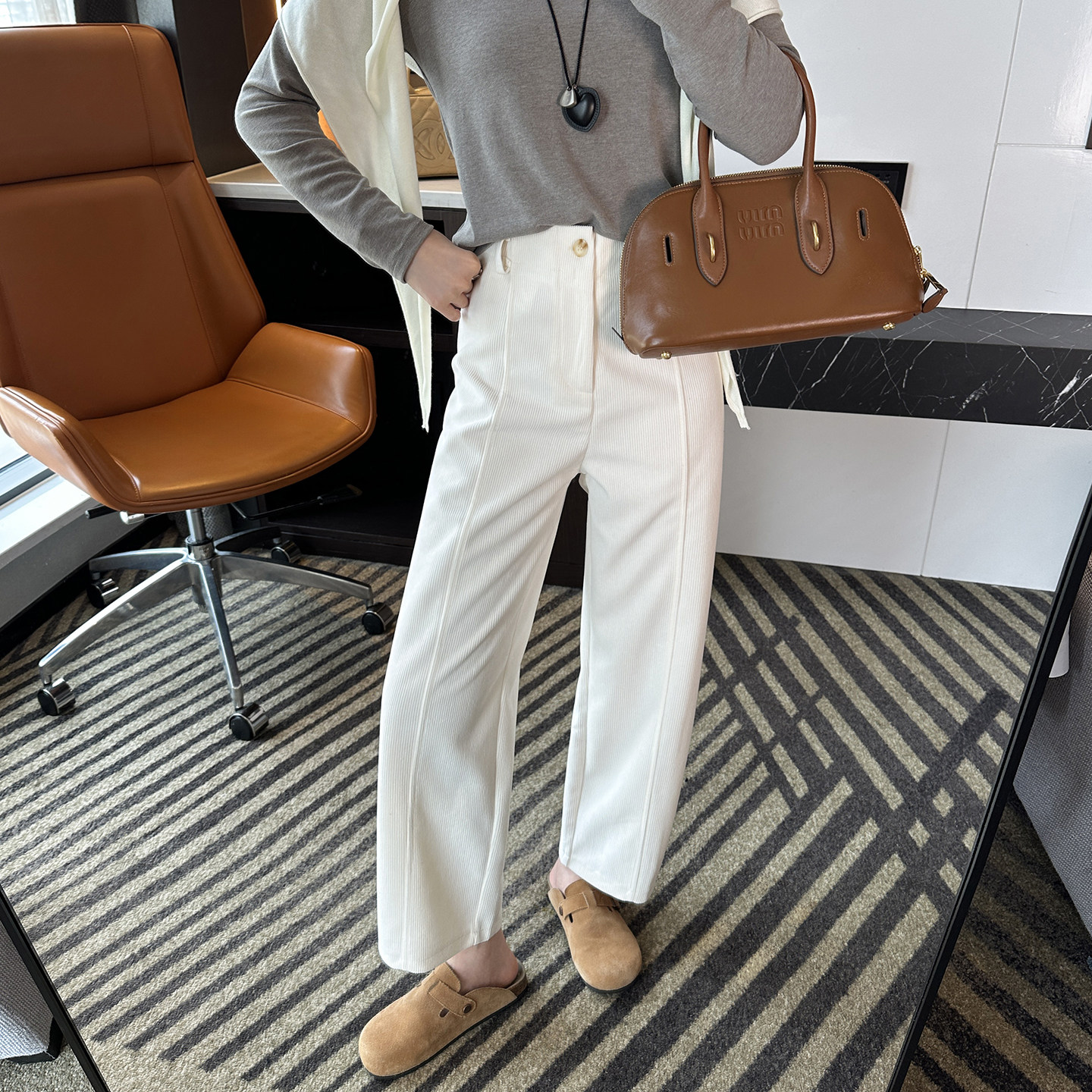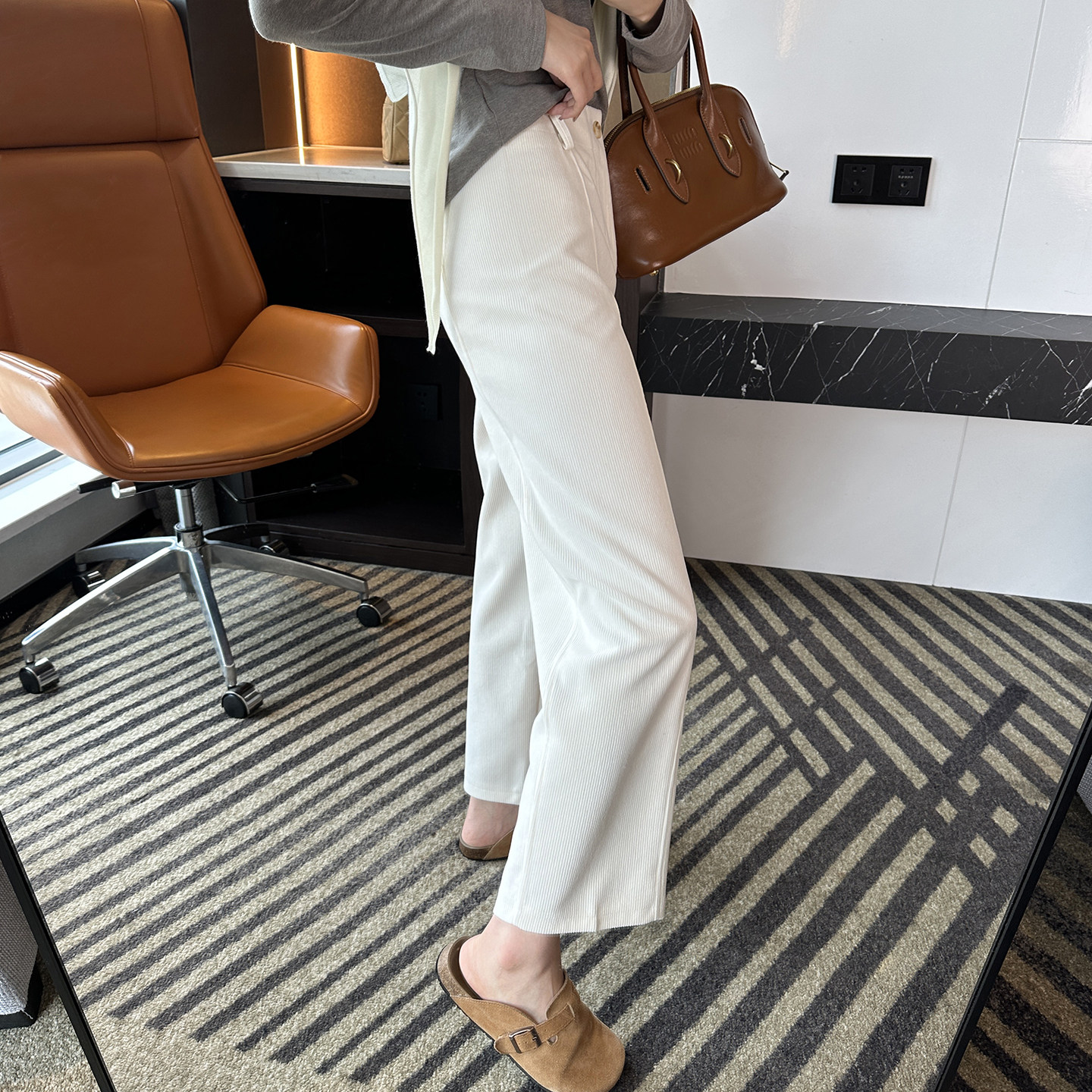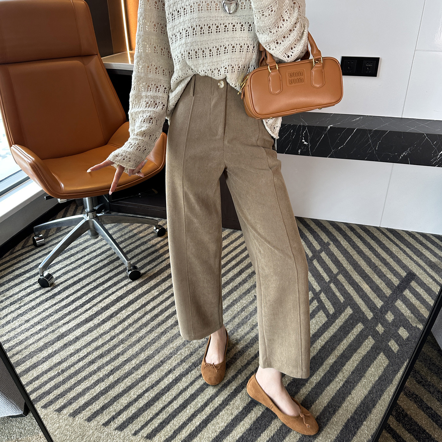 女2025秋新百搭八九分直筒裤 小个子神裤 灯芯绒宽松阔腿休闲裤