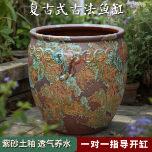 古法生态鱼缸造景全套小型客厅睡莲荷花乌龟缸陶瓷圆型农村大水缸