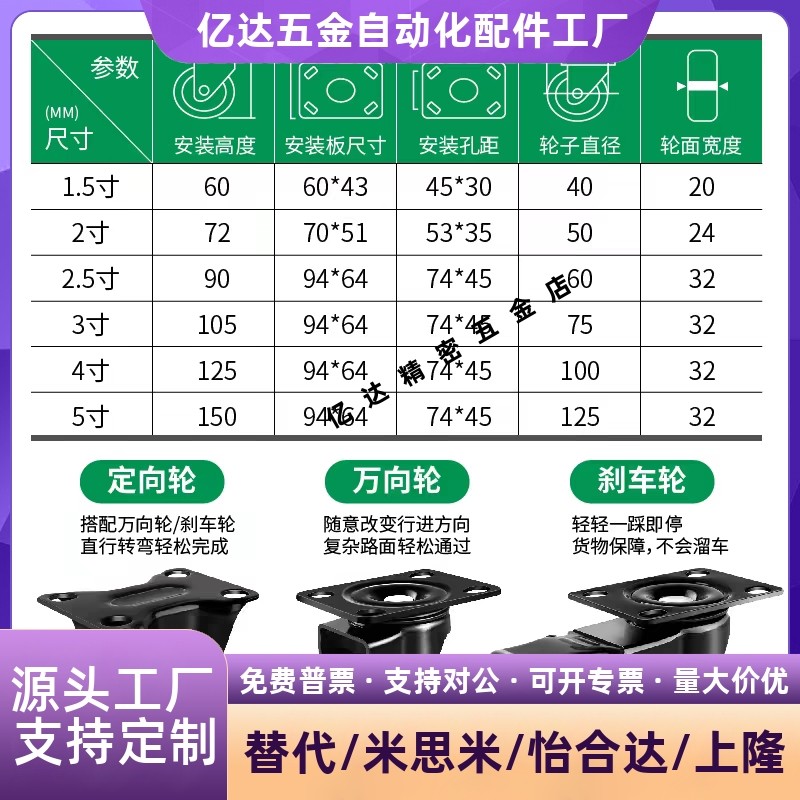 D40 D75 D100 D63 CBK01 D50 高性价比脚轮 D125 定向轮