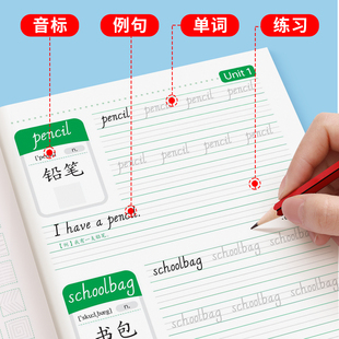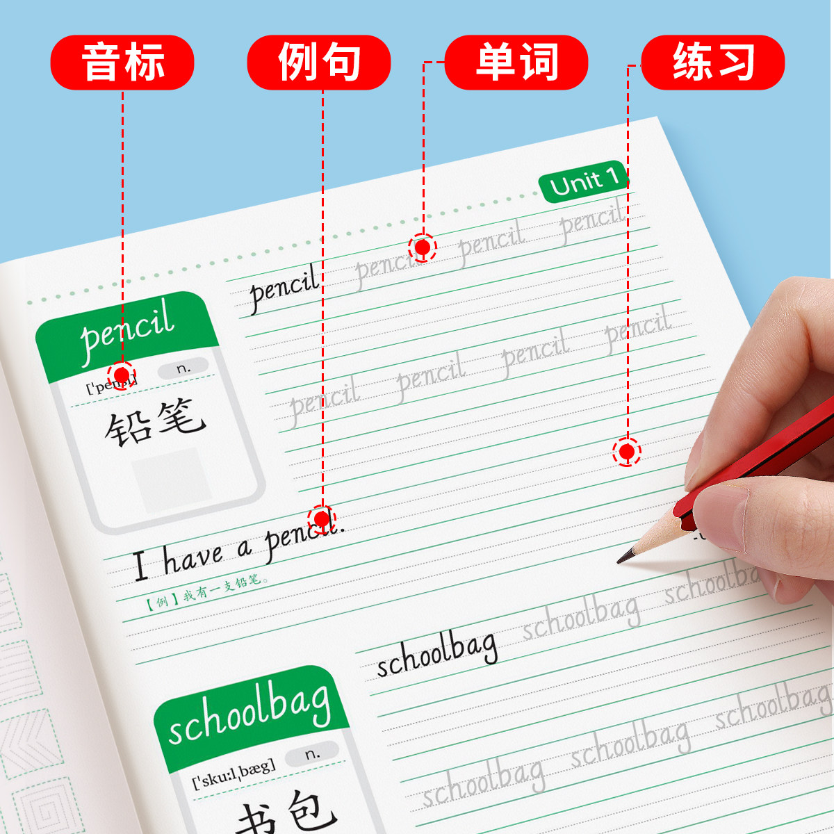 SL人教版 6年级四五六上册下册同步单词描红本英文练习册意大利斜体26个英文字母练习册 英语字帖一年级二年级三小学生英语练字帖1