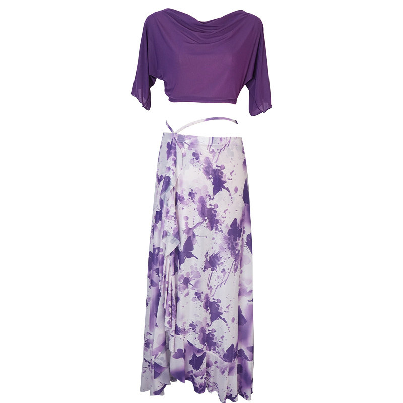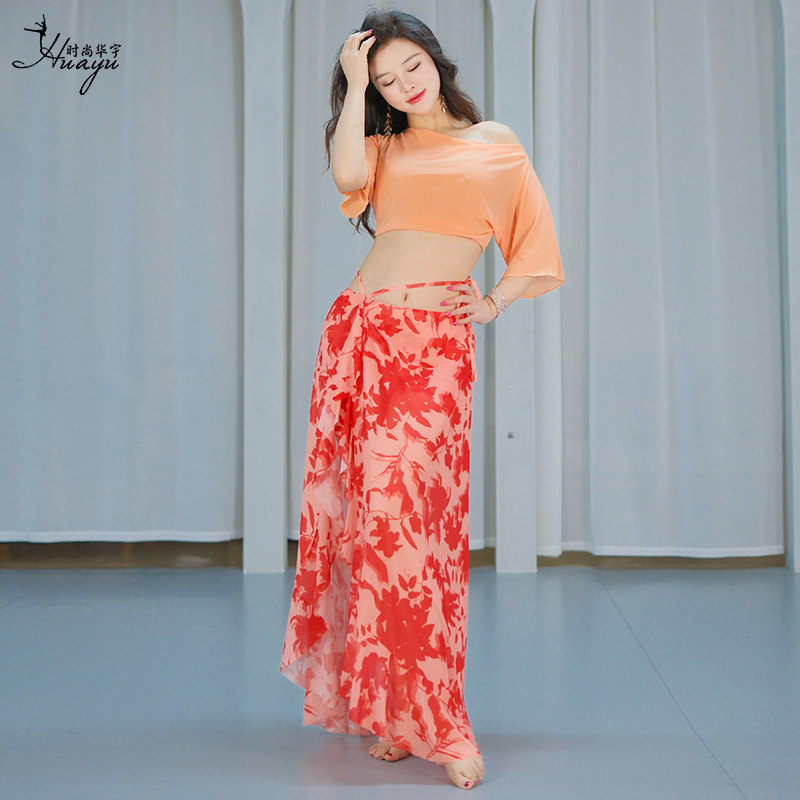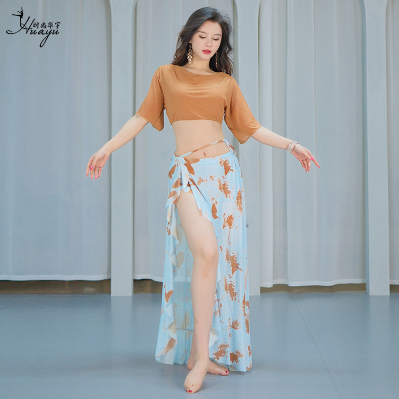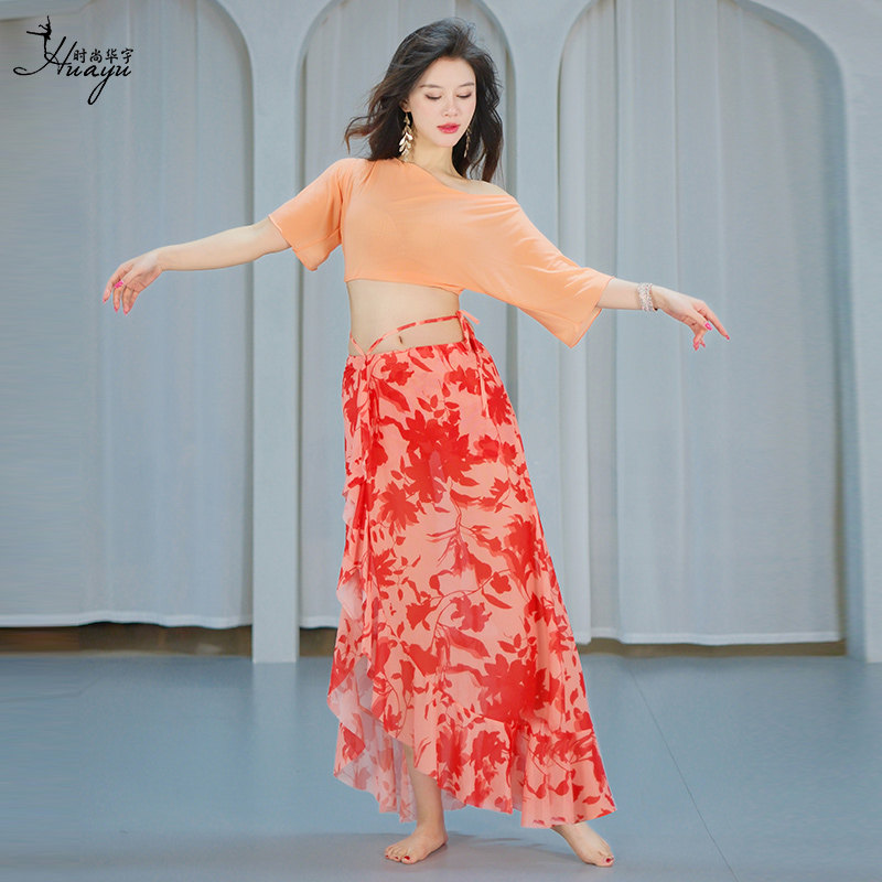 肚皮舞服装 显瘦表演出服撞色印花网纱性感东方舞蹈团班服 2025新款