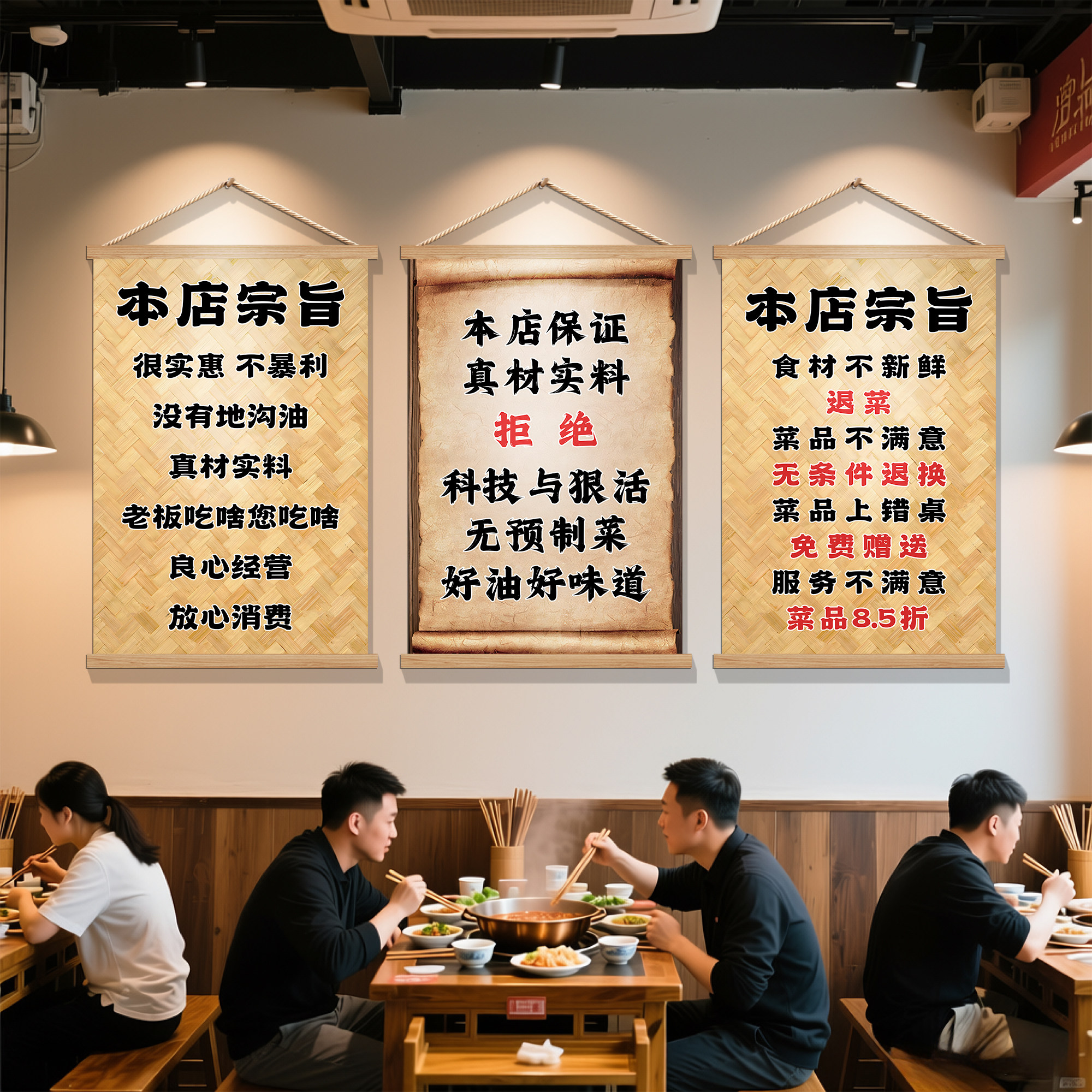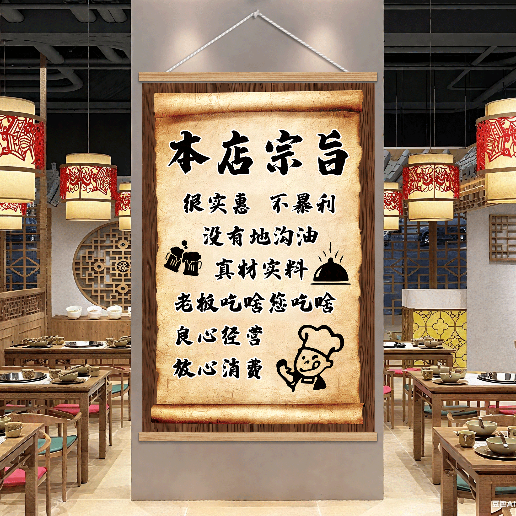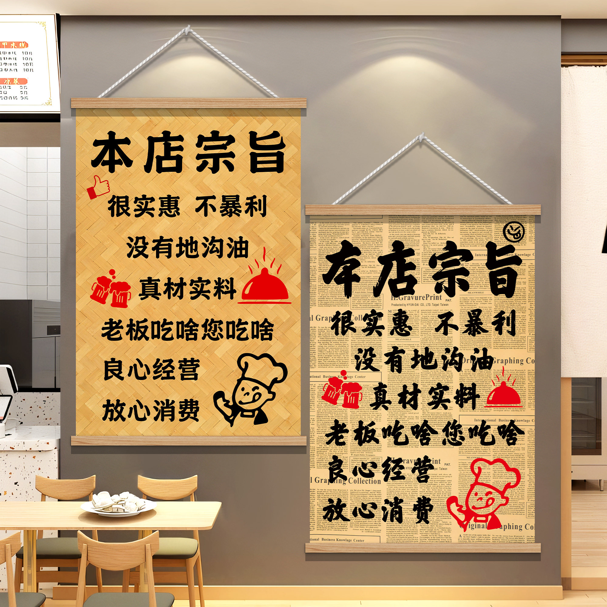 餐饮店墙面装 饰火锅烧烤早餐店本店宗旨店规创意背景墙挂画布定制