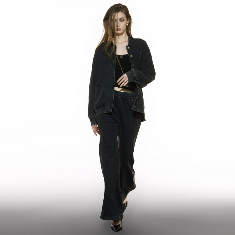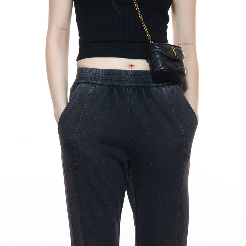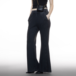 新款 尤缇2025秋季 简约通勤棉质复古休闲裤 TI率性细闪微喇牛仔裤