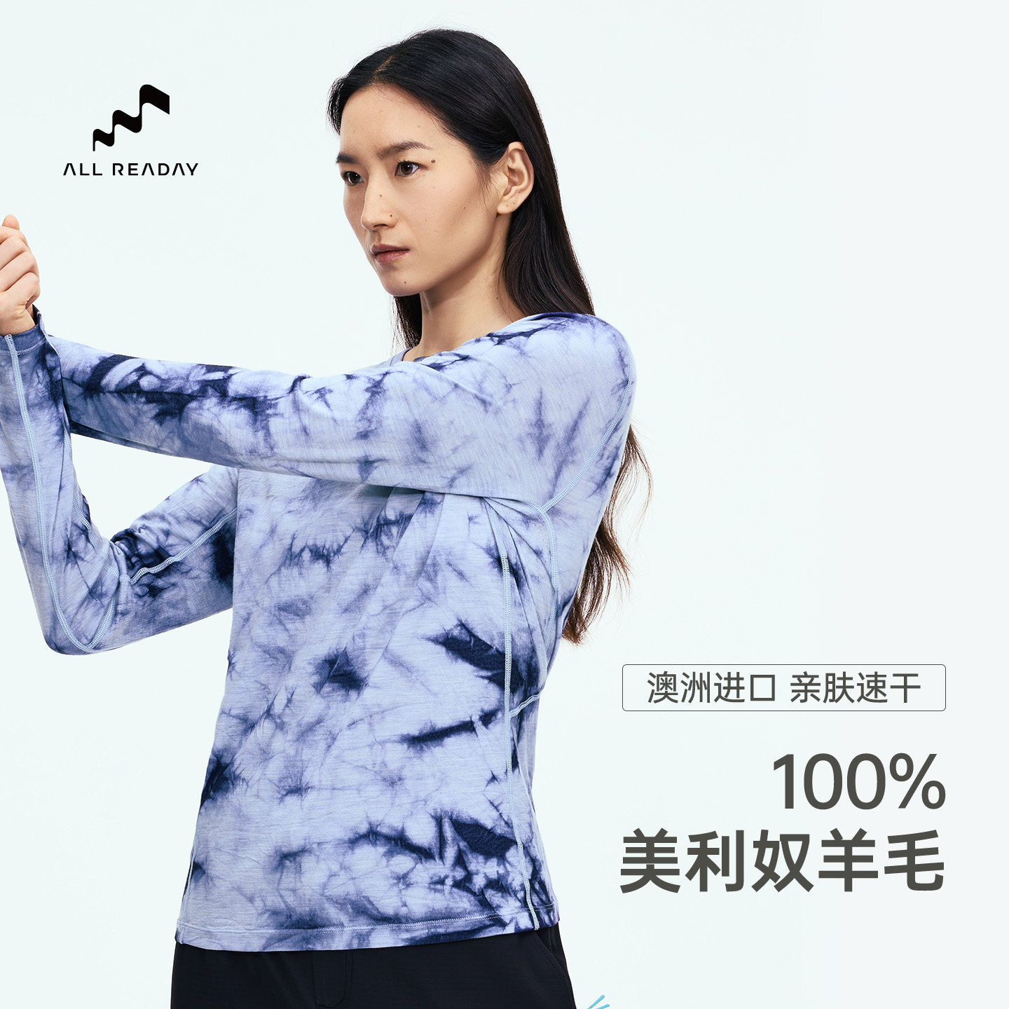 ALLREADAY新奇天 100%美利奴羊毛T恤一日徒步纯羊毛防晒衣upf50