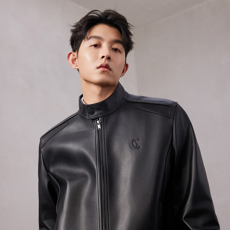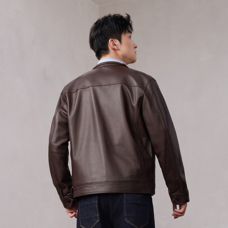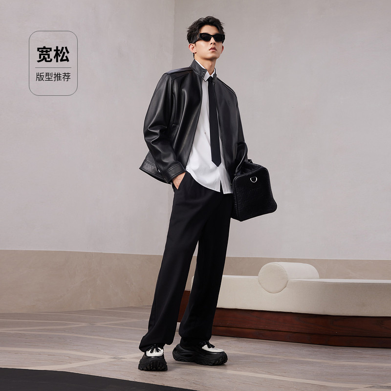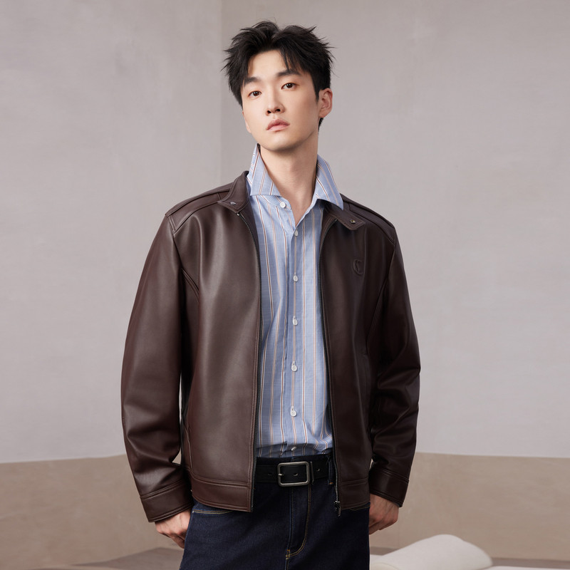新款 卡宾机车皮衣夹克男冬季 休闲风哈灵顿皮外套 绵羊皮真皮