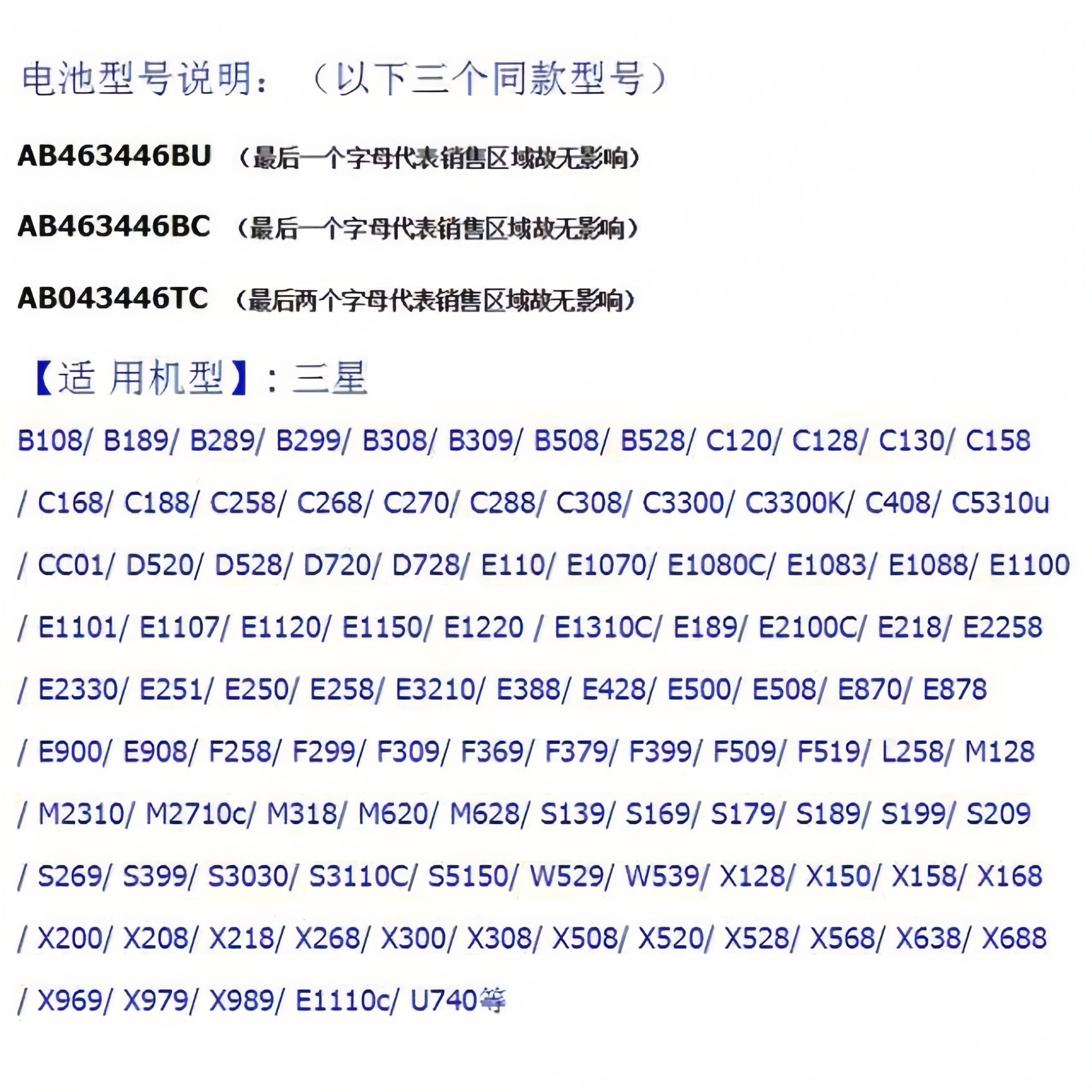 B289老年人手机AB463446BC 三星X208原装 B309 B189 BU原厂 电池