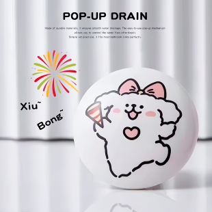 可爱小狗陶瓷洗脸盆卫生间洗手池漏水塞洗脸盆下水器创意弹跳内芯