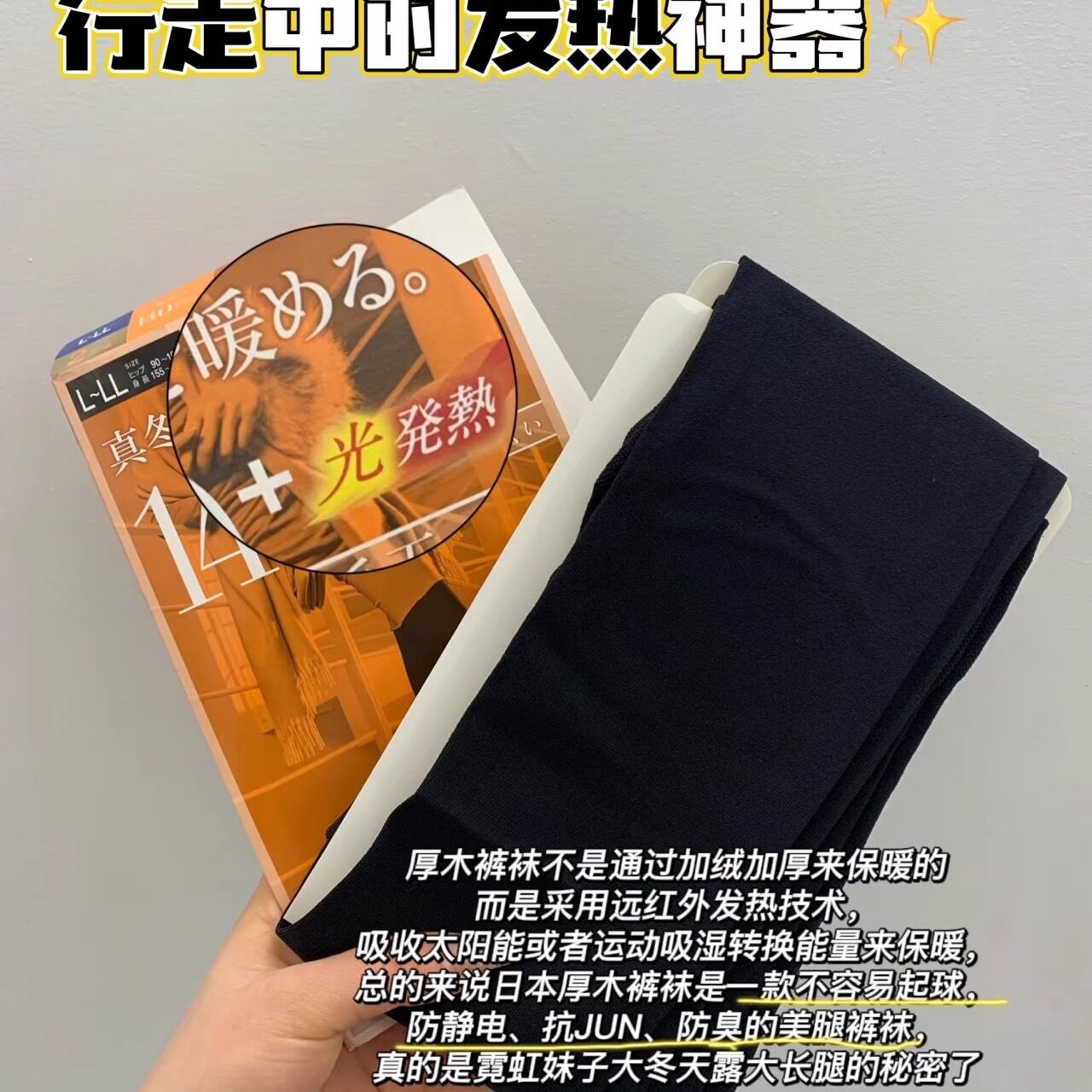 厚木Atsugi发光热打底裤 袜 女110D140D180D高腰显瘦保暖天鹅绒连裤