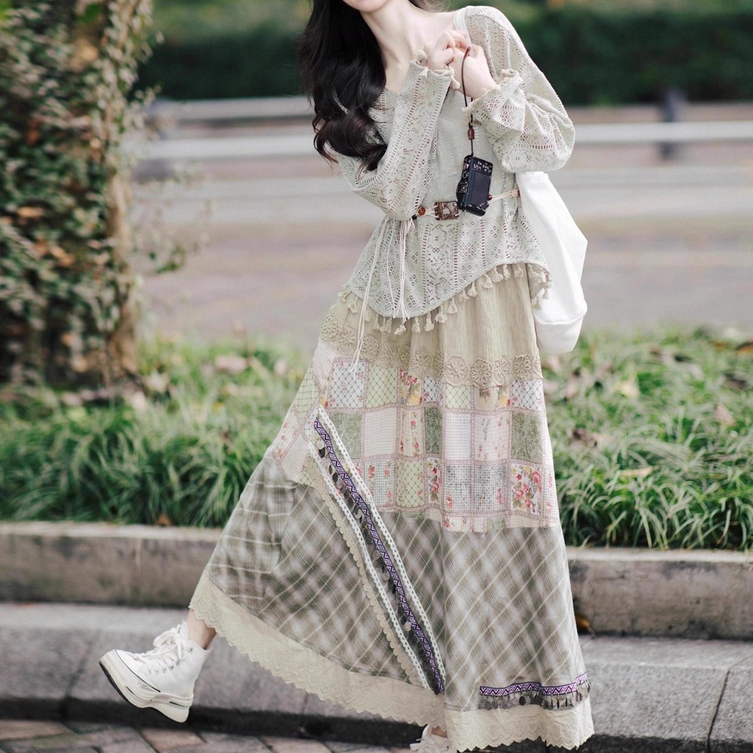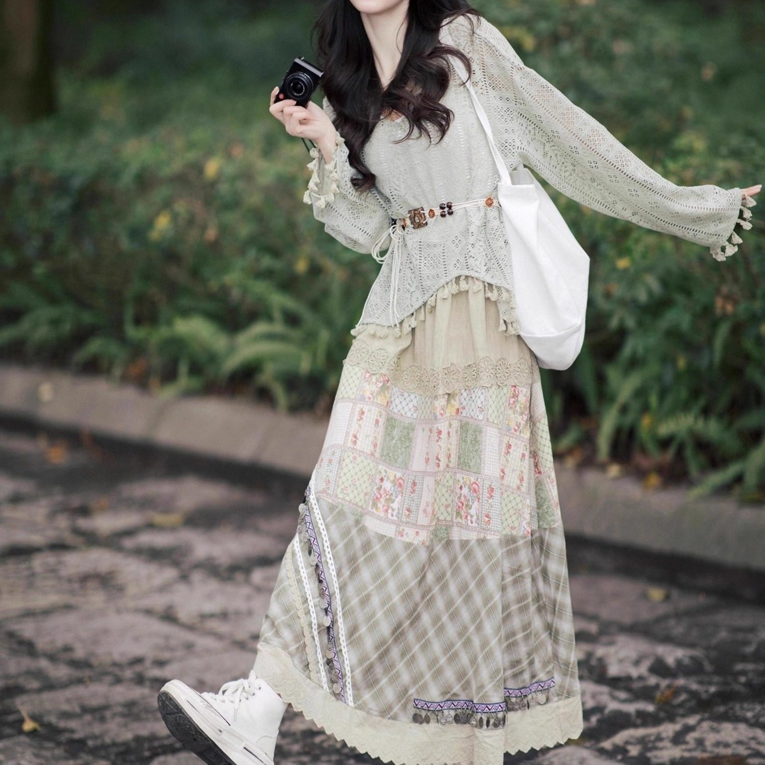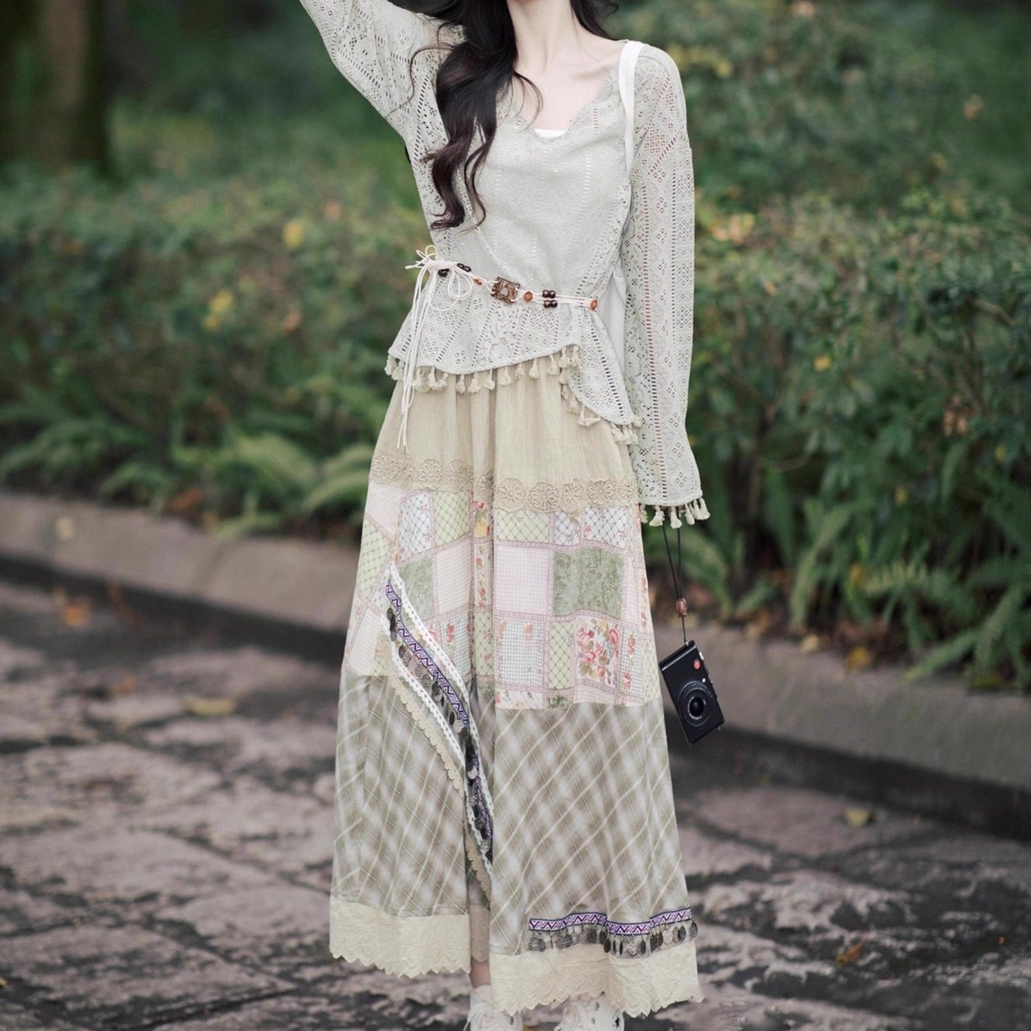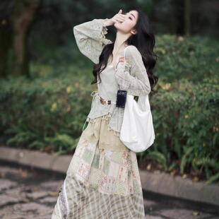 波西米亚早秋穿搭套装 度假风流苏镂空上衣半身裙两件套 女2025新款