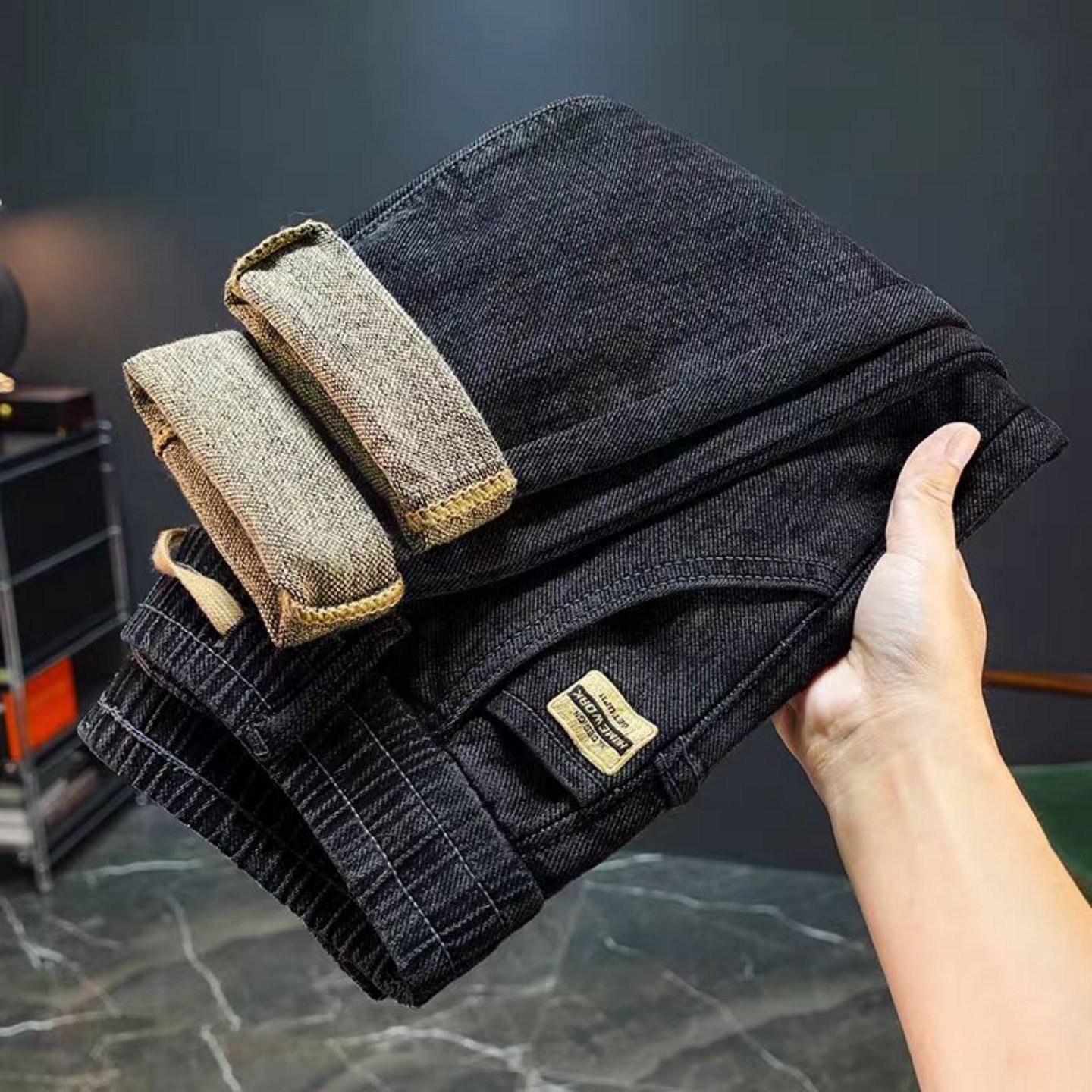 中年爸爸商务长裤 宽松直筒裤 男秋冬新款 KZH真维斯高端加绒牛仔裤